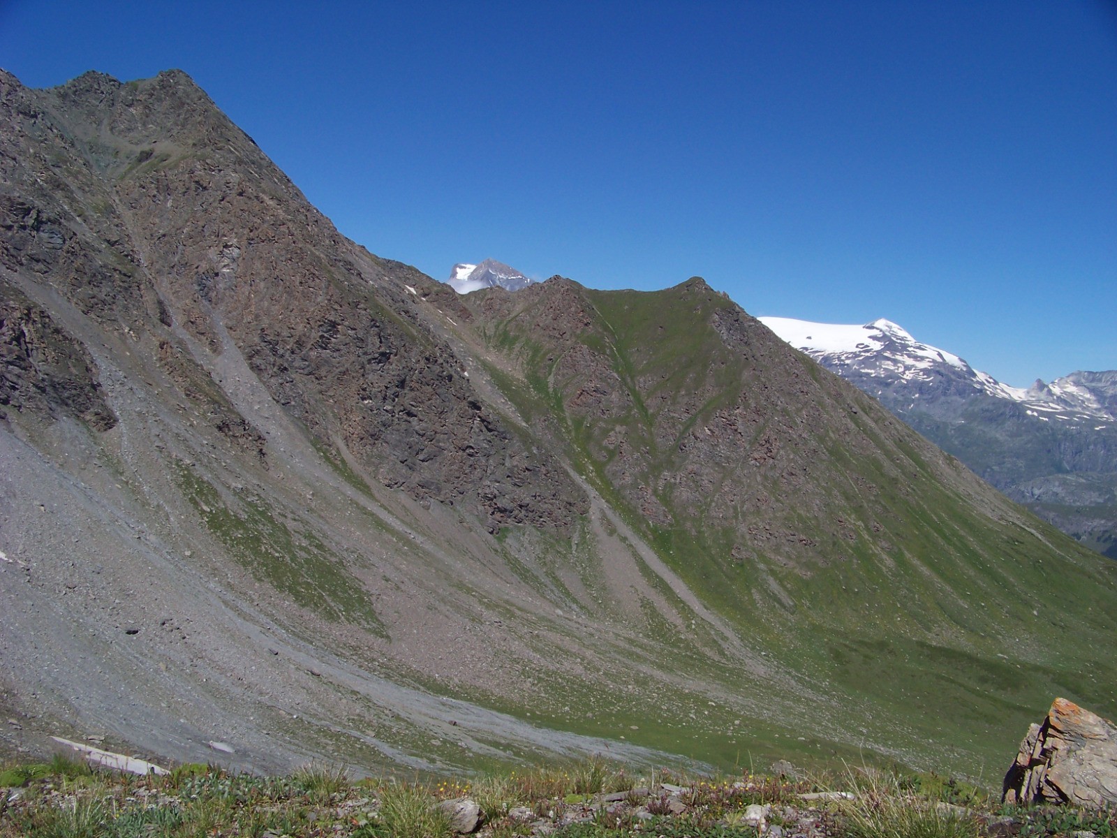 Balade super agréable et très variée. Les grandes pentes raides versant S, sur le Laro dans des schistes noires, avec un panorama de fou sur le plateau et le lac du Mont Cenis.