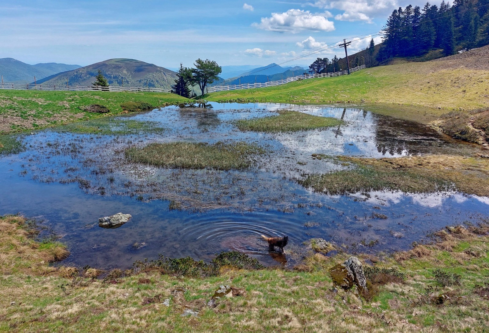 Se garer à l'entrée de la station de ski du mourtis (31), au niveau de la piste de fond - VTT qui s'oriente au sud-ouest. Suivre le balisage VTT, sans suivre le balisage jaune qui bifurque plein sud. Rester de niveau jusqu'au tuc d'usclat (carte ign - 1347 m). Monter alors plein Est ( balisage jaune rando et VTT rouge ) dans la sapinière, puis dans les pelouses à toute crête jusqu'au sommet de la station, tuc de pan 1734 m puis tuc de l'étang à 1816 m. Redescendre par la piste qui passe à l'étang de boutève avant de revenir au parking.