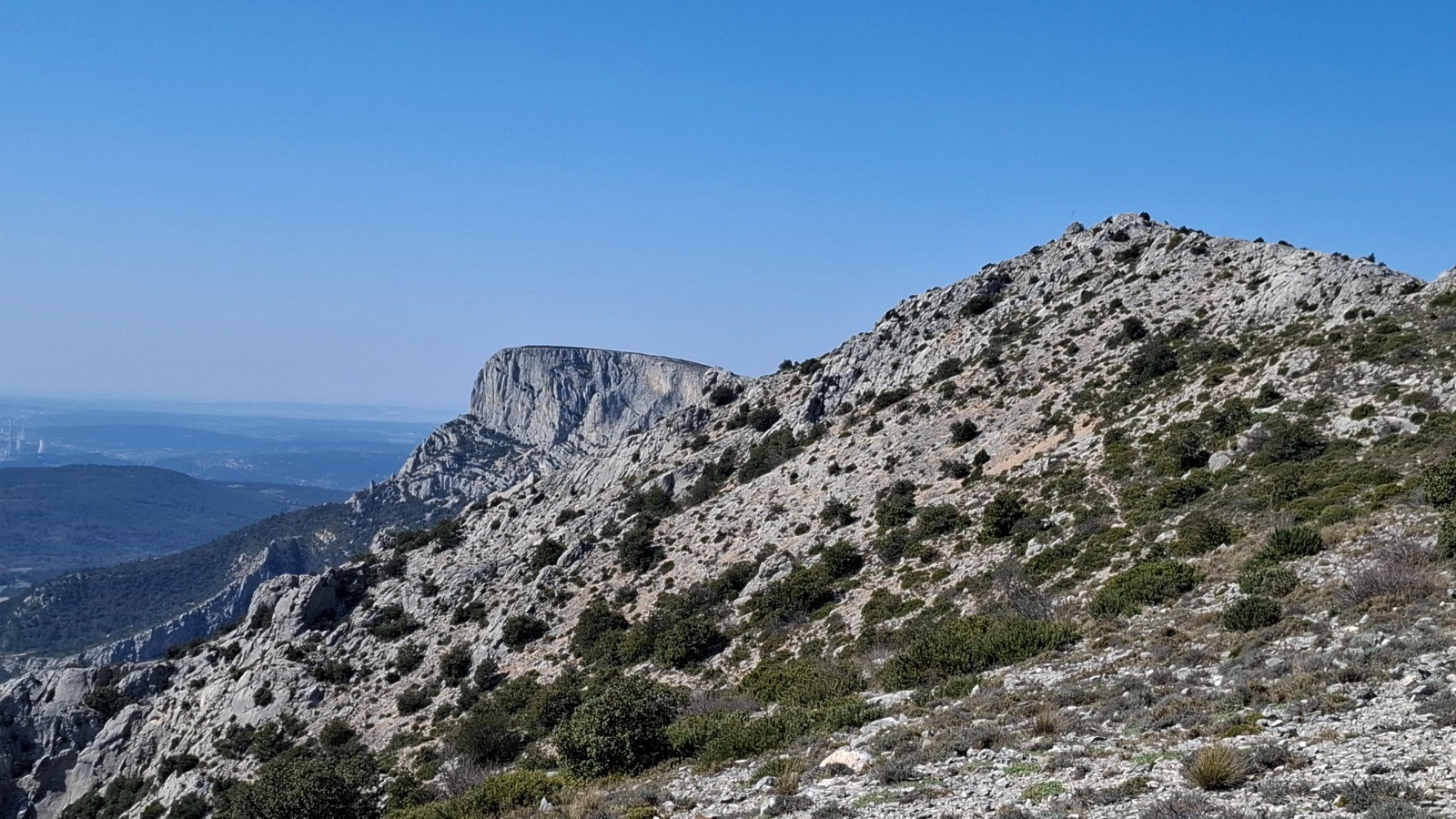 Une bien belle boucle dans les paysages de la Sainte-Victoire. Le pic des Mouches point culminant de la chaine de montagne 1011 m. Le point de vue à 360° est magnifique.