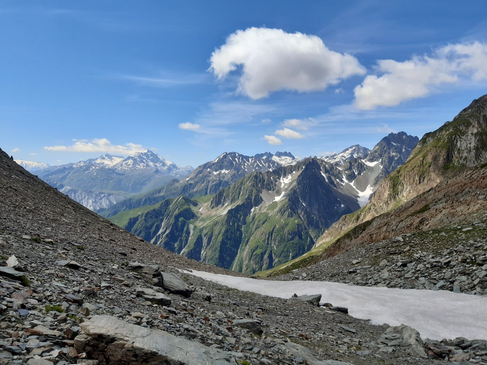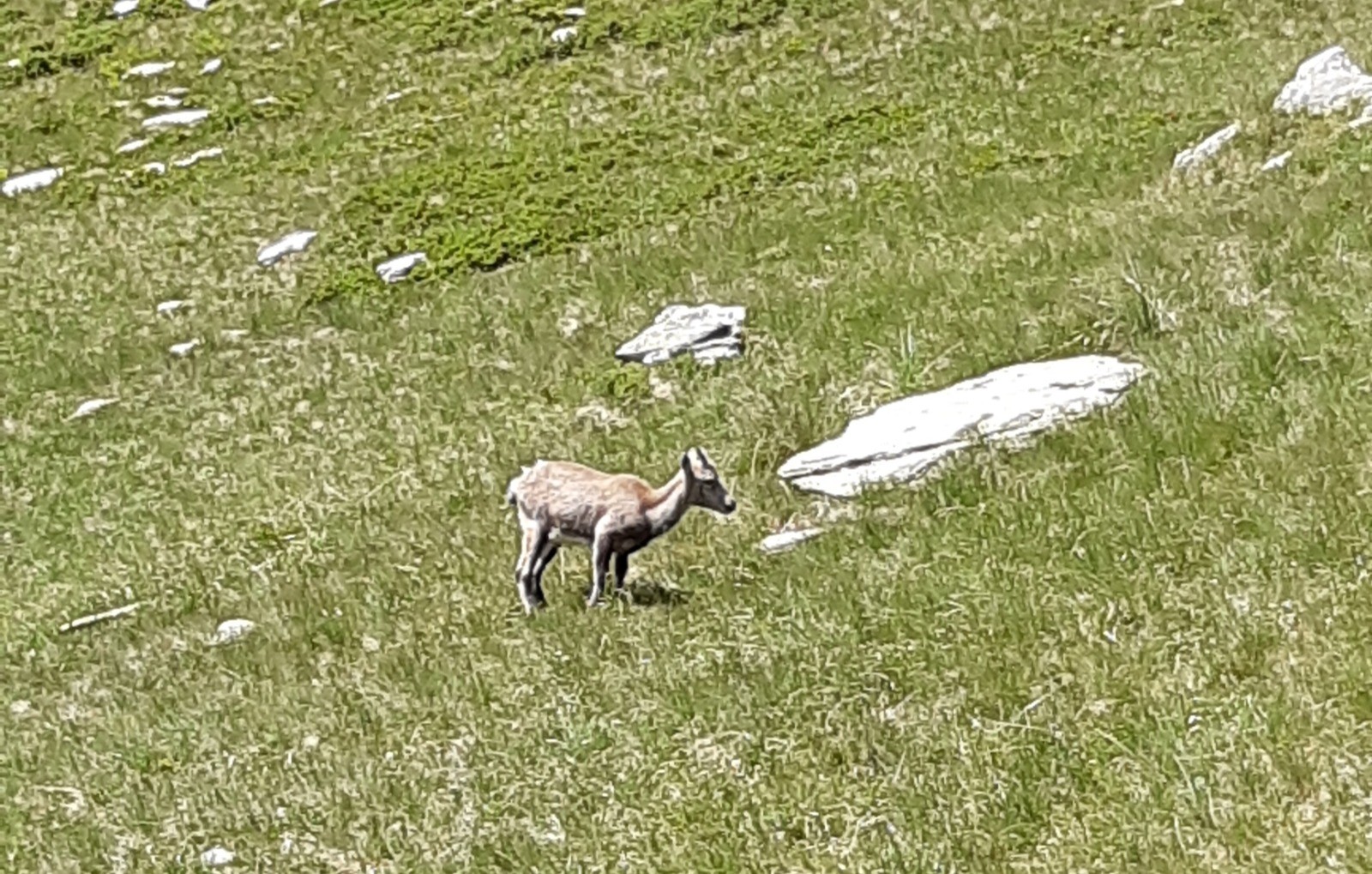 Montée vers le Col des Balmettes, sentier balisé en Vert. La dernière montée vers le Col se fait dans la combe sur le pierrier (1 peu raide et instable et non balisé, donc servez vous de la trace GPX). Vers le haut de la montée, se diriger vers la droite pour atteindre le col. Ensuite descente vers le lac où nous avons pu observer pendant 30 minutes des Chamois qui venaient paître juste à proximité de notre pause pique-nique (inoubliable). La route d'accès à la rando est d'assez mauvaise qualité et très étroite.
