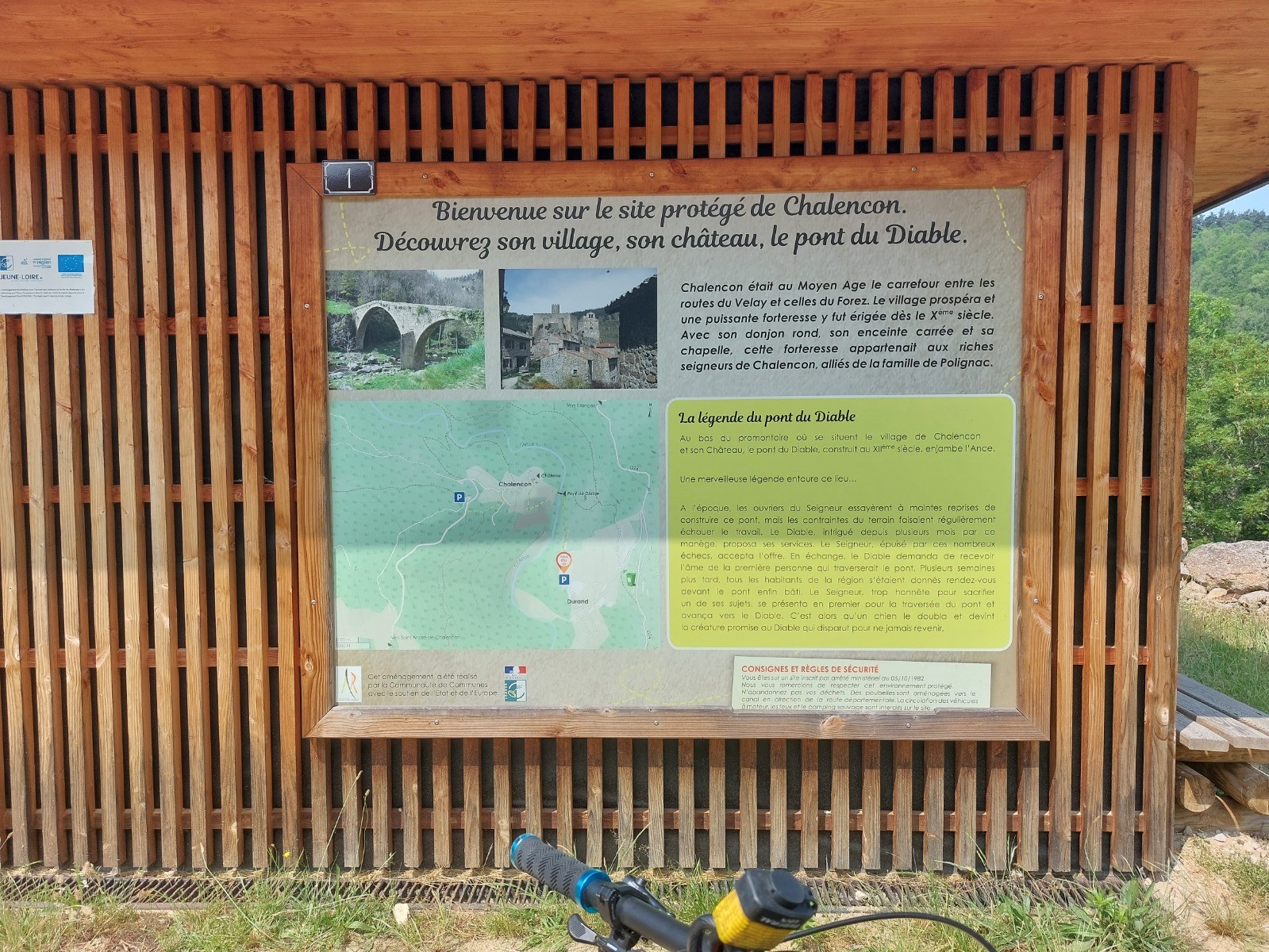Une jolie descente vers le pont de Bounery avant de remonter vers (d'après moi) le plus joli village du parcours : Chalencon et son château (voir photos). La descente qui suit nous mène au pont du diable dont la légende est inscrite en haut de la montée suivante.