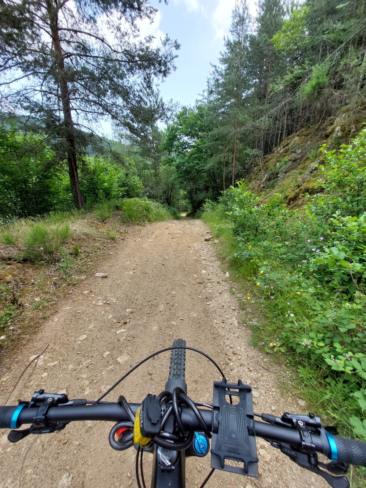 Liaison jusqu'à Châles où commence une descente très roulante et peu technique sur 4 km qui nous mène sur une départementale.
