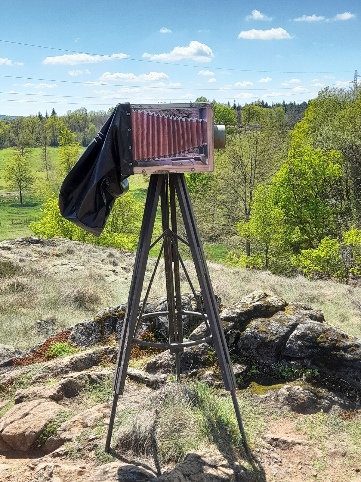 Re. Comme on était dans les quartiers et que le lion est tombé dans le petit déj....🥣😅. La deuxième ballade s'imposait. Beaucoup plus riche en terme de paysage et surprises. Clin d’œil, connait le coin pour avoir fait de la photo depuis... l’appareil à soufflet est toujours en bon état. Mettrez vous la tête sous la capuche ?😆. La carrière à Serpentine, la bergerie, la voiture à moutons, et le trou d'eau encore plein pour ce jour. Repasserait pas au mois d'Aout🥲.