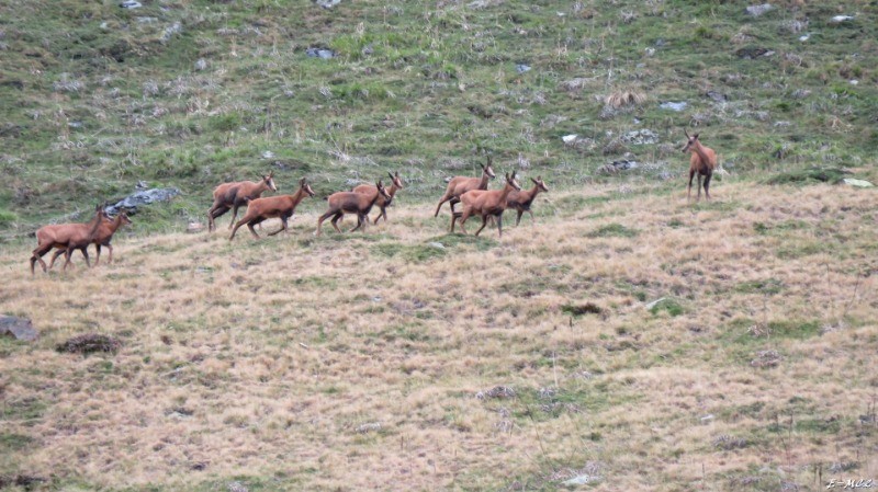 Pour la descente garder la direction la Cabane de Toucouets. Pour cela redescendre au col, prendre sur la droite le sentier, quelques cairns, traverser le replat d'herbe qui fait suite pour voir la cabane. Continuer vers elle au mieux par diverses traces et hors sentier. De la cabane reprendre l'itinéraire de la montée.