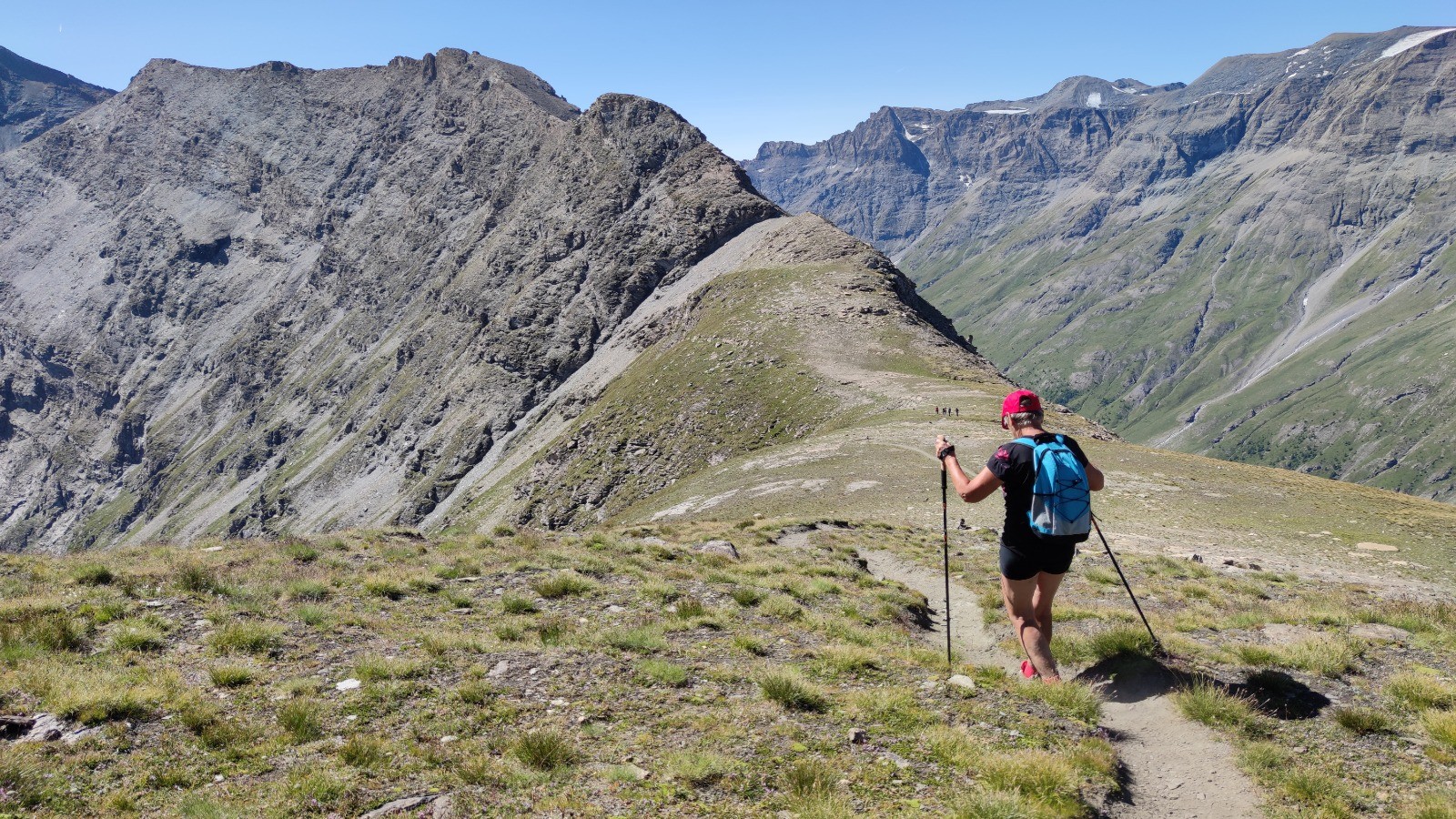 Descente : Retour sur la crête et bifurquer à gauche versant Avérolle. Ce côté est nettement moins fréquenté, mais la trace et bien visible dans le sens de la descente (ça parait moins évident à la montée !)