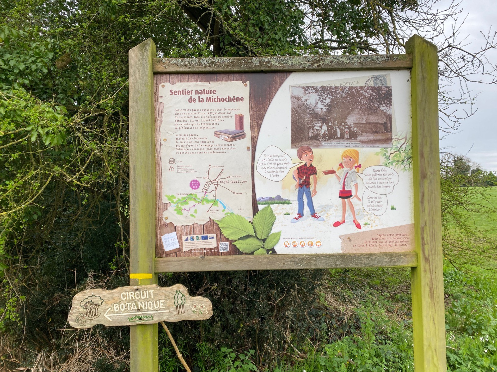 "Suivez Flore et Robin, deux héros qui vous guident dans cette balade botanique et ludique au coeur de la campagne bretonne, entre chemins creux et sous-bois.