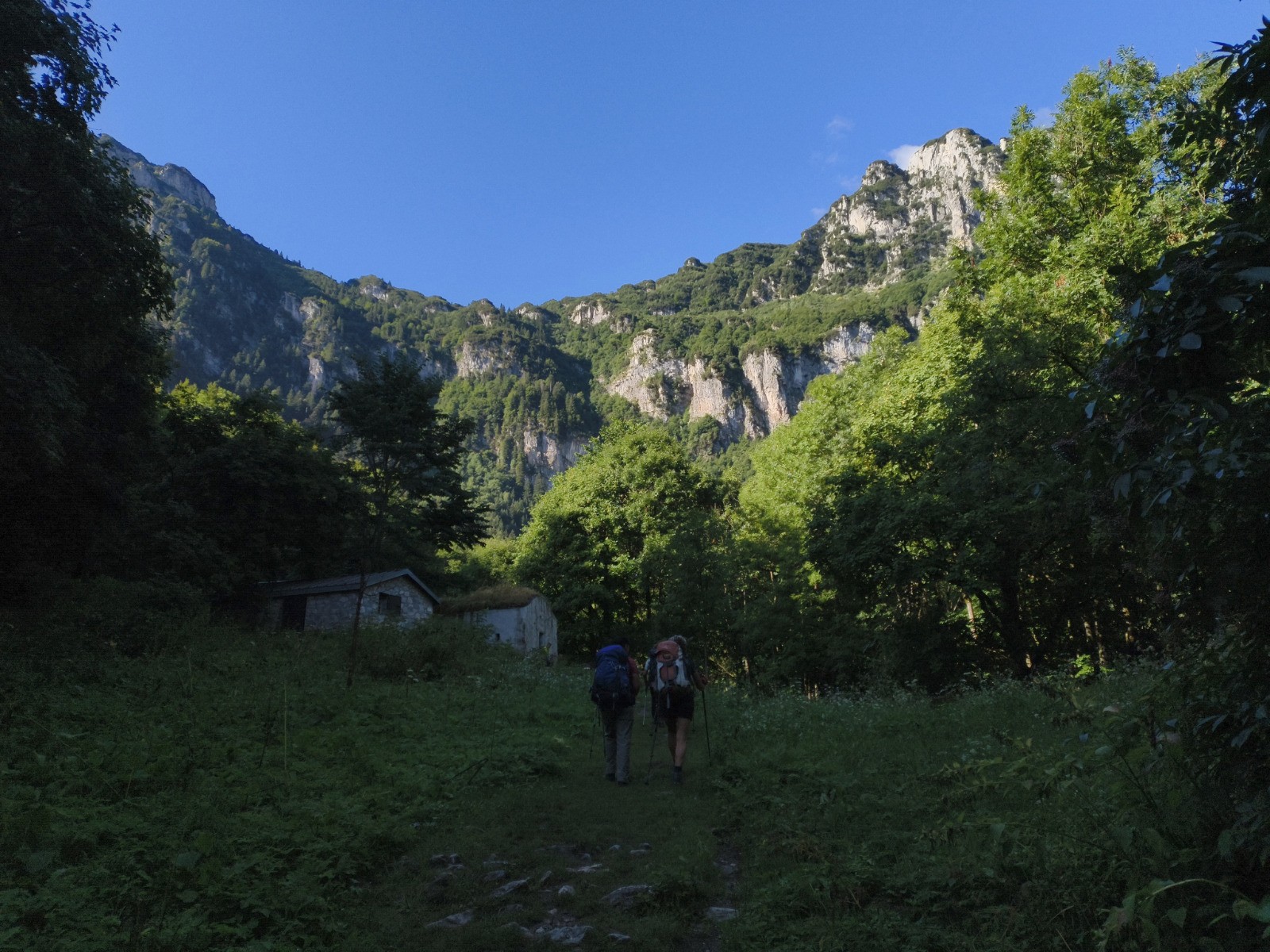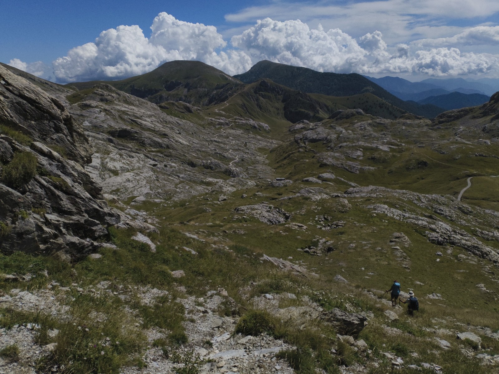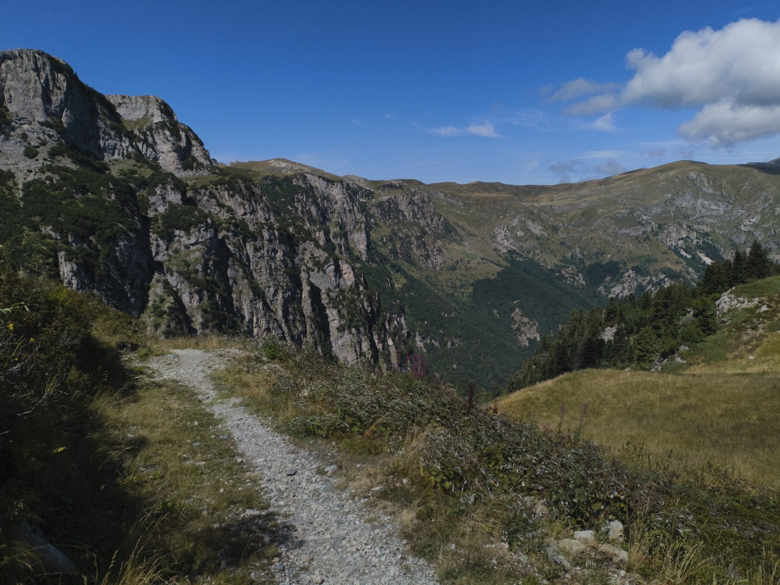 Rifugio Pian del Gorre (1032 m) - Gias Fontana - Cascata Gias Fontana - Pis del Pesio - Gias degli Arpi - Colle del Prel - Passo del Duca (1989 m) - [hors piste à 11.00 km] - Castello delle Aquile (2513 m) - Passo Scarason (2300 m -> France) - [hors piste à 12.96 km] - Route du Marguareis - Colle del lago dei Signori (2111 m -> Italie) - Rifugio Don Barbera (2070 m)