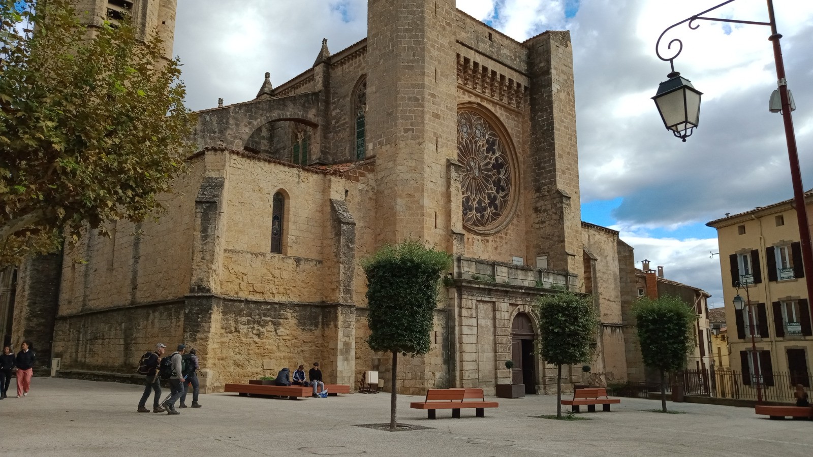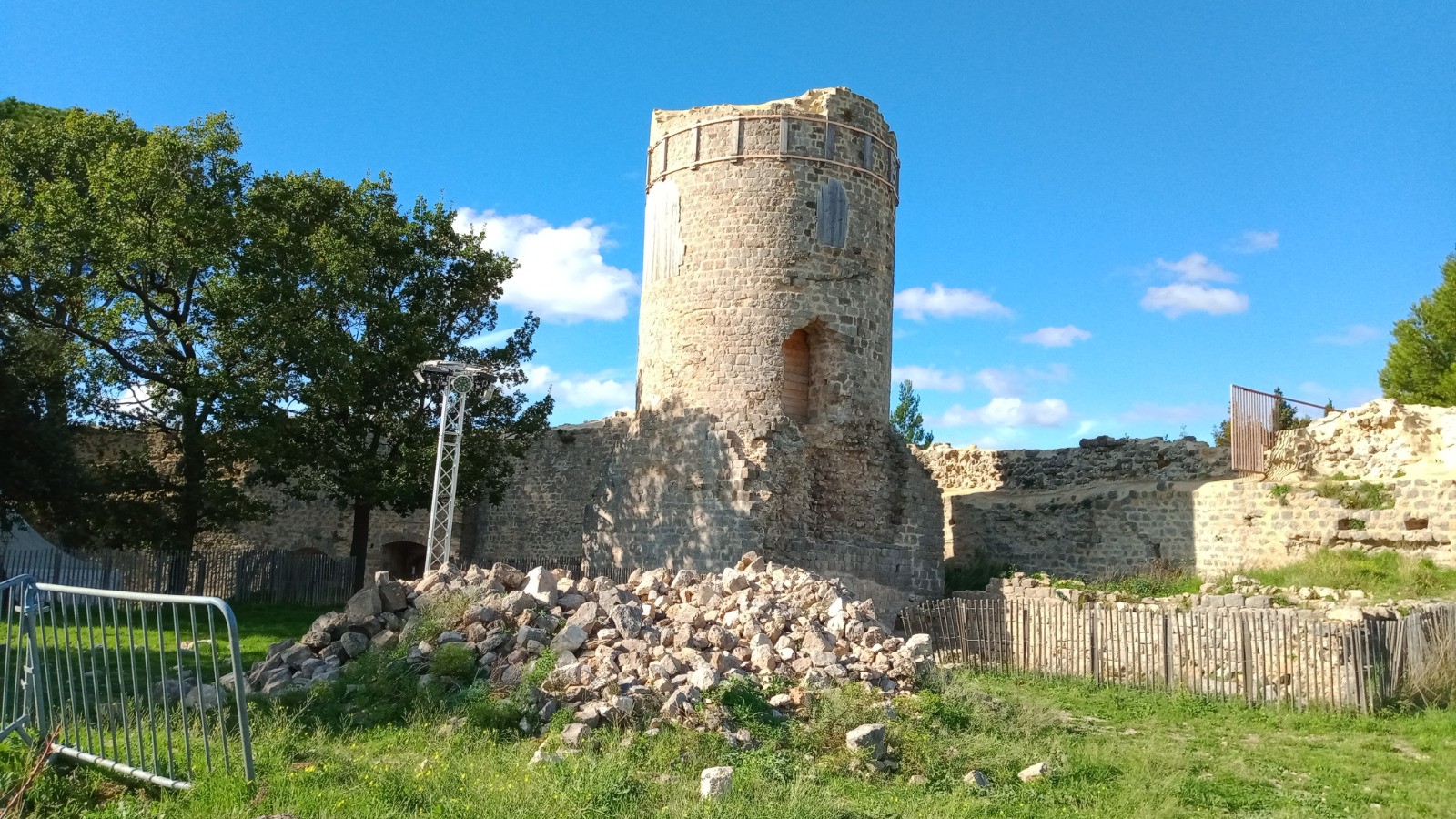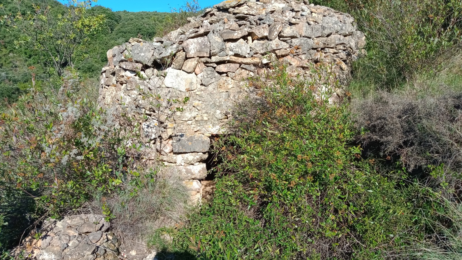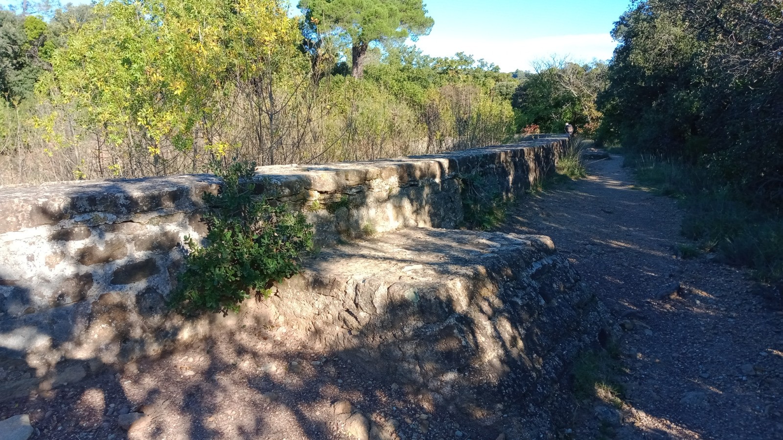 Au départ de l'ancienne manufacture de Villeneuvette, le chateau de Clermont et le mont Caylus