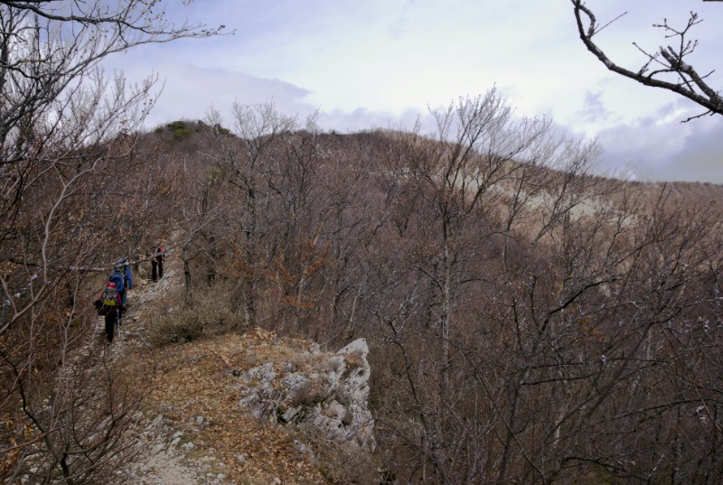 Du sommet prendre la crête direction est, toujours sur le GR 429, qui ramène au col de Dieu-Grâce. Là continuer sur la crête, toujours direction globalement est, jusqu'au col de la Ruche. Ce sentier est balisé en jaune. Du col descendre nord par un sentier, toujours balisé en jaune, qui ramène à Dieulefit.