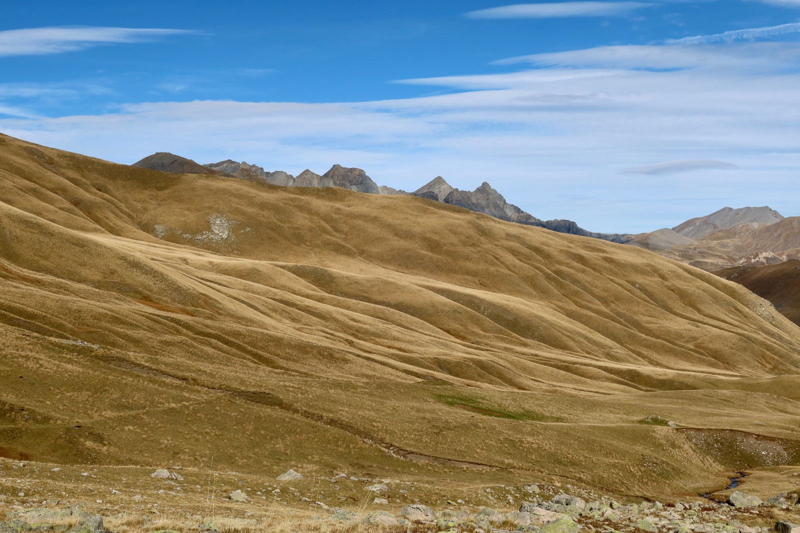 Rando en boucle au départ de Bousiéyas sur la crête de la Blanche et en dessous de la crête de Rougne, en passant au col de l'Alpe, à 2590m, magnifiques panoramas sur le Mercantour et la cime de la Bonette.Possibilité de rencontrer le gypaète barbu nichant sur les falaises autour du magnifique hameau de Bousiéyas.