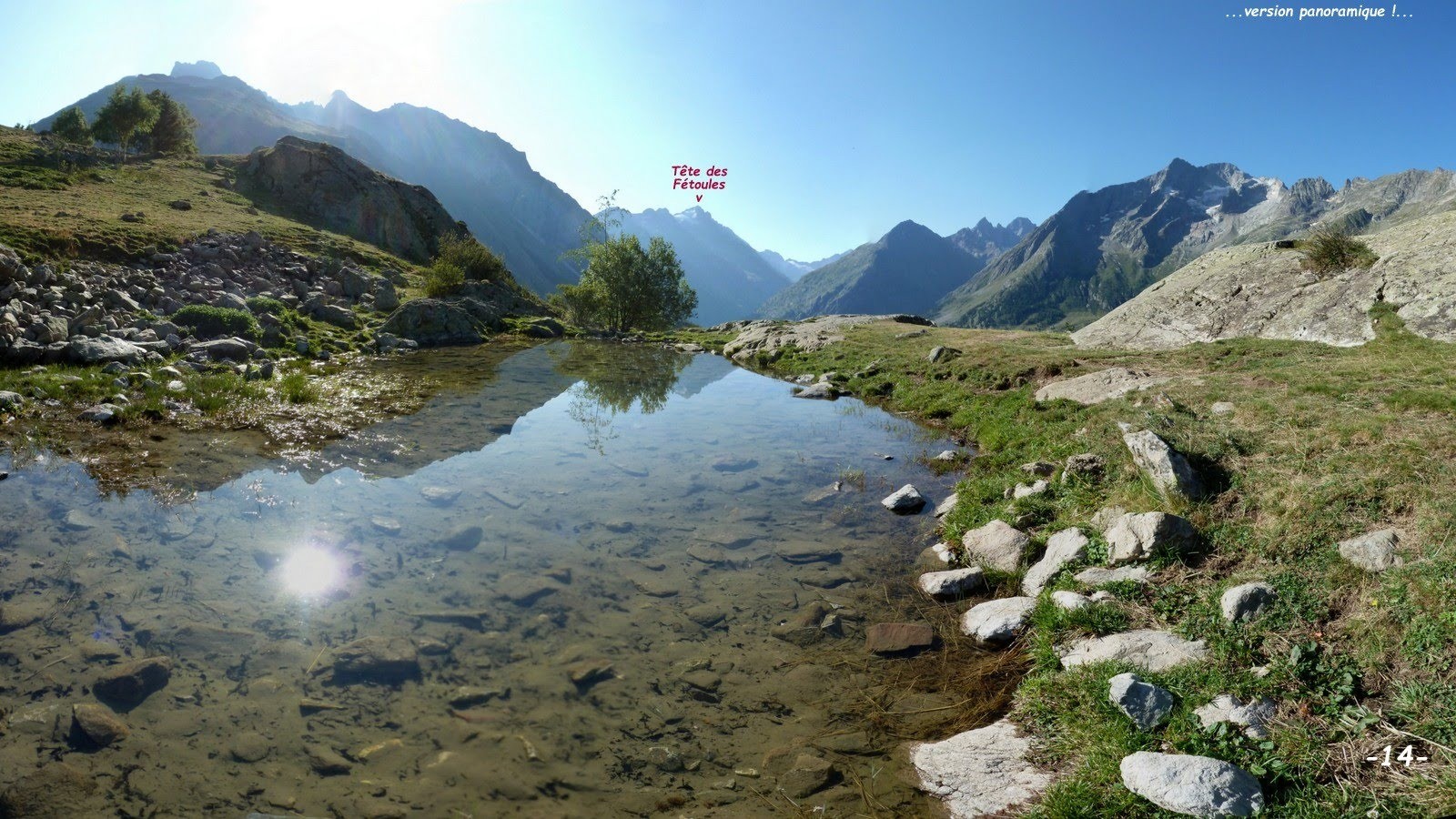 Toujours en guise de repos actif entre deux grosses randonnées, nous avons imaginé cet original circuit qui fait un mixte entre les 25ième et 26ième randonnées les plus belles de l'Oisans d'après Agnès Couzy et Claude de Merville, en limitant la distance et surtout le dénivelé à Pierre Grosse, une centaine de m au-dessus de la table d'orientation. Cette randonnée, privée de tout sommet, est malgré tout très intéressante de par son relief très esthétique et reposant au-dessus du Lac Miroir des Fétoules, ses belles perspectives sur St-Christophe-en-Oisans, la Vallée du Vénéon et quelques-uns de ses vallons suspendus dont le vaste alpage de l'Alpe du Pin juste en face. Le retour par le spectaculaire sentier très escarpé de Combe Noire, où il vaut mieux ne pas emmener de jeunes enfants et leurs grand-parents, qui passe au-dessus de l'école d'escalade de la Gorges du Torrent du Diable en fait une petite randonnée de caractère comme nous les aimons.