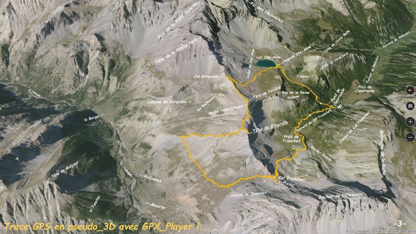 Tête de Girardin, 2876m, est le point culminant de la crête qui, du Col Tronchet, 2656m, à l'Est et du Col Girardin, 2699m à l'Ouest, ferme la vallée de Ceillac au Sud et sépare les eaux entre l'Ubaye et la Durance, tout comme les départements des Hautes-Alpes et des Alpes de Haute-Provence. Si son accès à partir de son col homonyme s'apparente à une simple promenade (sur une crête panoramique particulièrement facile que ce soit en suivant son confortable sentier ou en restant toujours au plus près de son fil large et pour nous encore plus agréable tant pour la vue que pour le confort de nos ripatons), il n'en va pas de même depuis le Col Tronchet : crête particulièrement accidentée, beaucoup plus rocheuse en rocher assez pourri, formellement déconseillée aux randonneurs même alpins qui ne seraient pas suffisamment sûrs de leur technique.