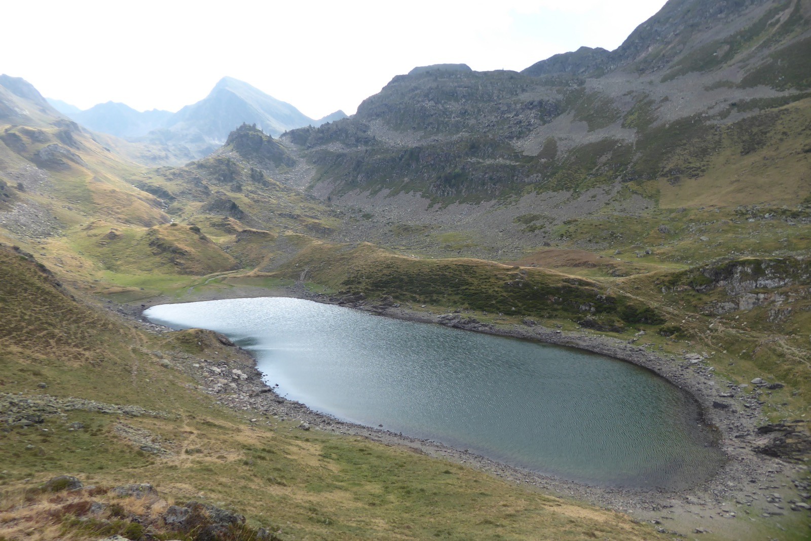Temps gris mais qui a tenu jusqu'à 15h30 environ.Le nom primitif du Lac Bleu était lac de Lhecou, signifiant« grosse pierre » ou « pierre plate ». Ce nom a été conservé pour le torrent qui s'écoule du lac.
