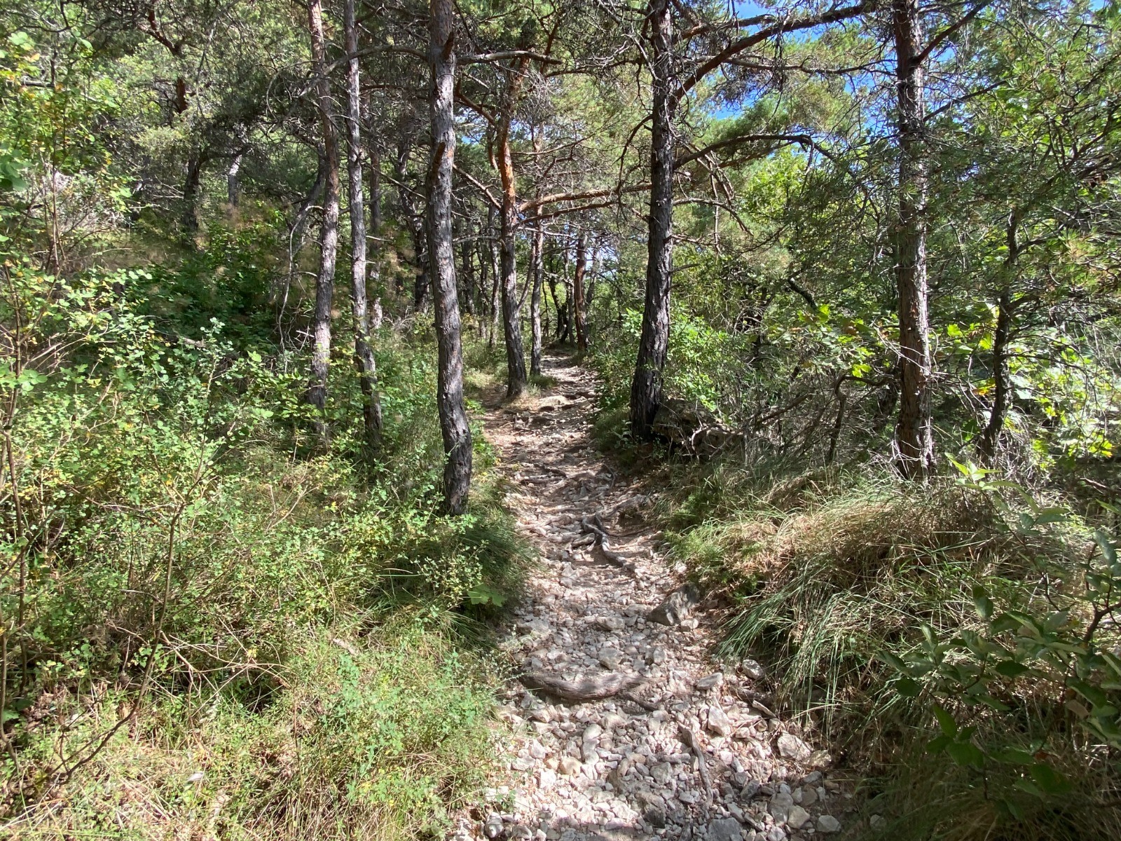 La randonnée commence par une montée dans les sous-bois dans un chemin rocailleux. ( photo no 2 )