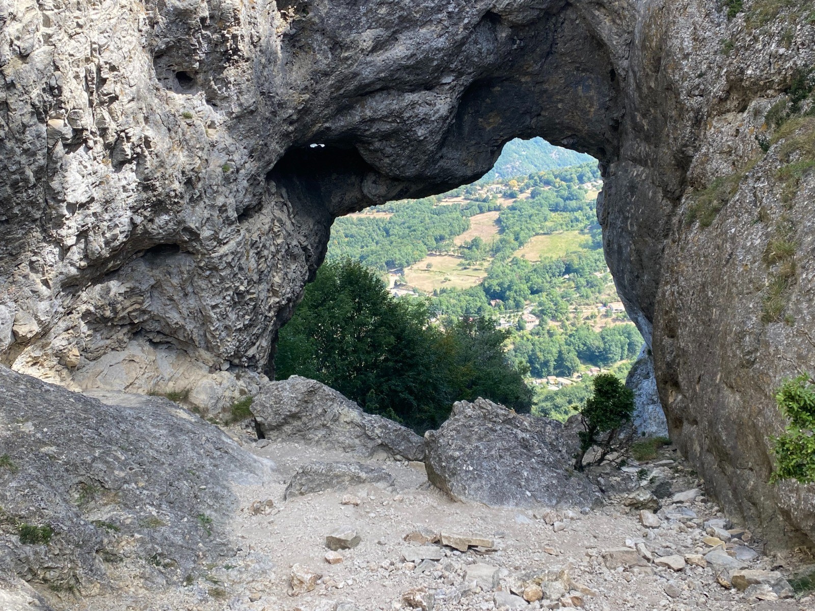 Une arche naturelle en pierre qui fait la séparation entre les deux versants de la montagne.