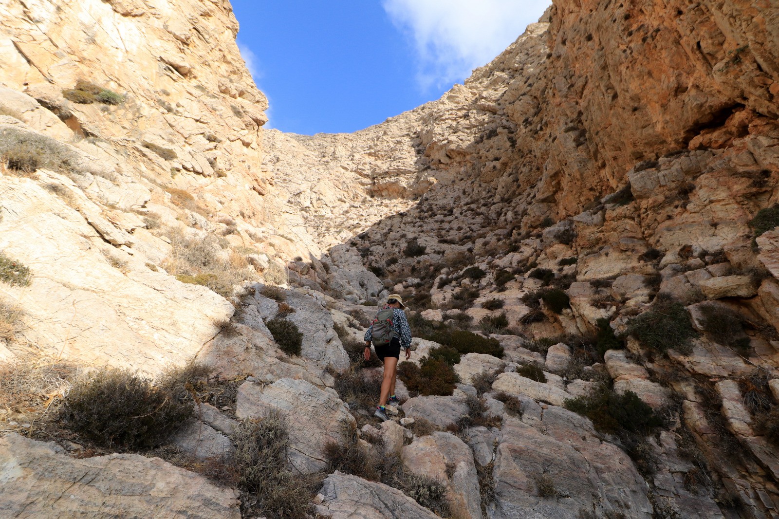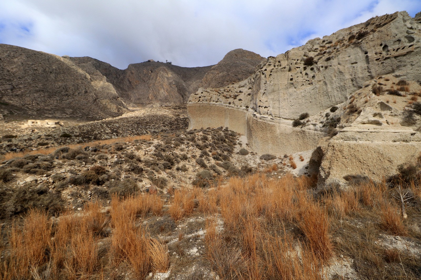 Dès le départ, se diriger vers les grottes de pierres ponce bien visibles. Les contourner par la gauche et viser l'étroit vallon, passage le plus accessible entre