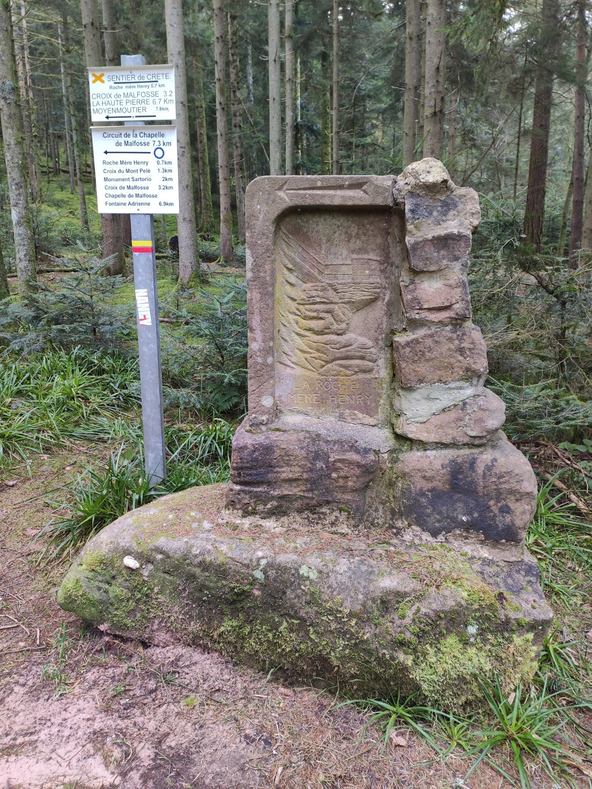 Saint-Prayel (MF de Balthazard) - Vallée de Ravines - Pont de Malfosse - Chapelle de Malfosse - Croix de Malfosse - [GR533] - Monument Sartorio - Croix du Pelé - Roche Mère Henry - Quatre Bancs - Coichot - Vierge du Haut Port - Rocher de Grande Basse - Roche des Rondeaux - Col de Croix Collé - MF de Balthazard
