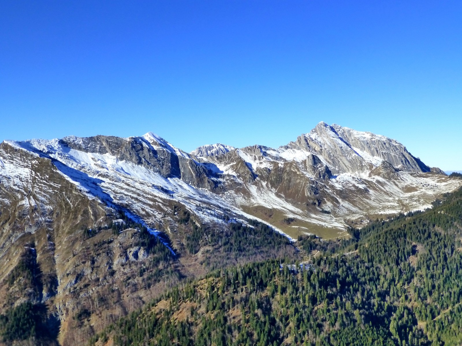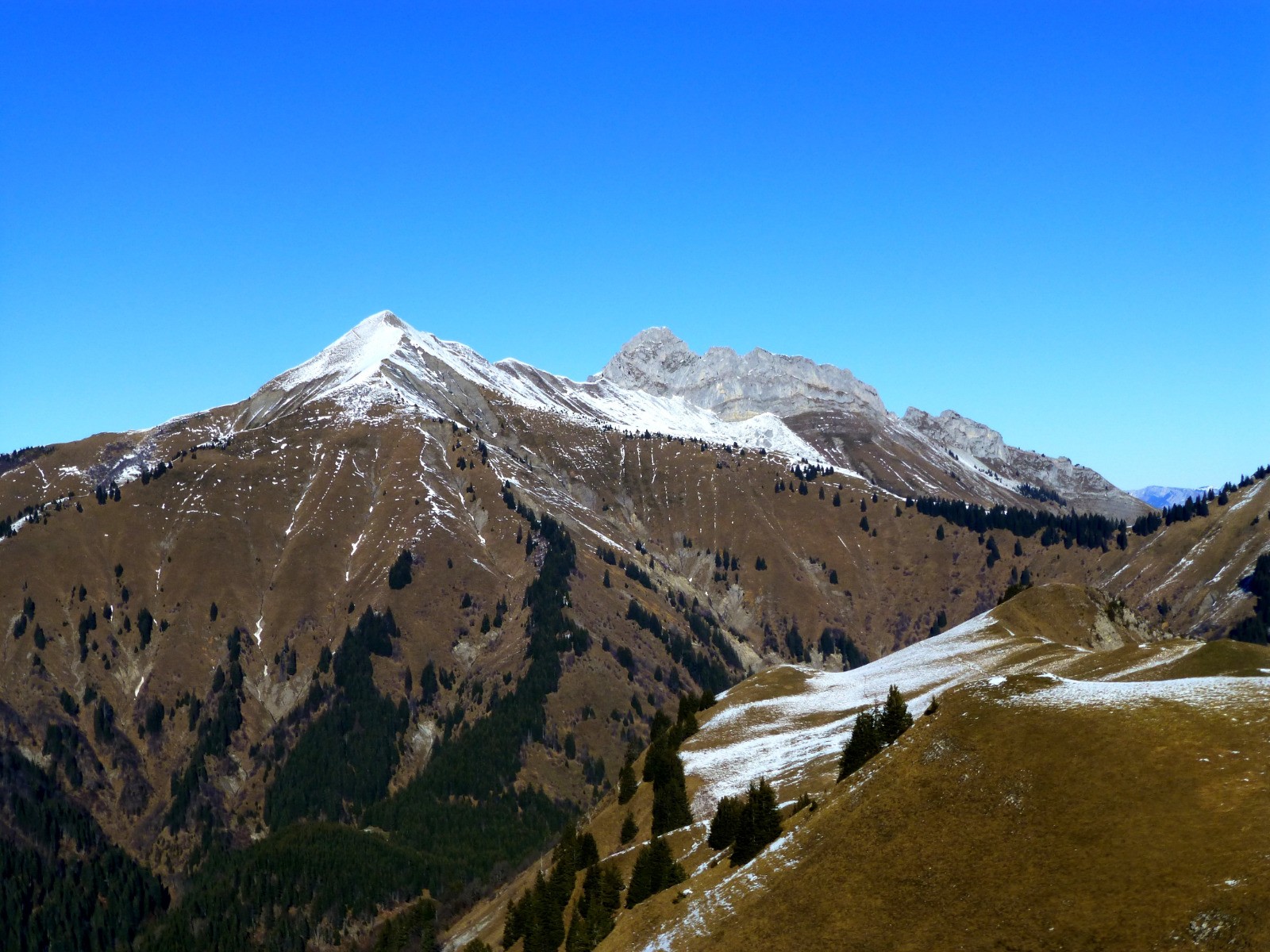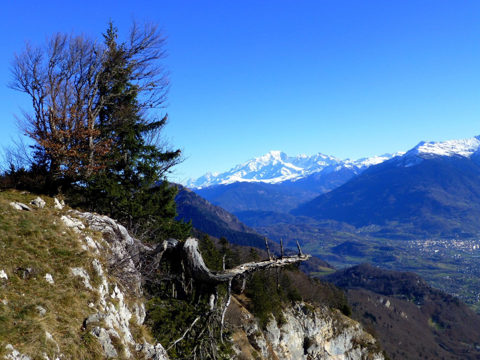Panorama exceptionnel sur les massifs des Bauges, de la Lauzière, du Beaufortain, du Mont Blanc ...