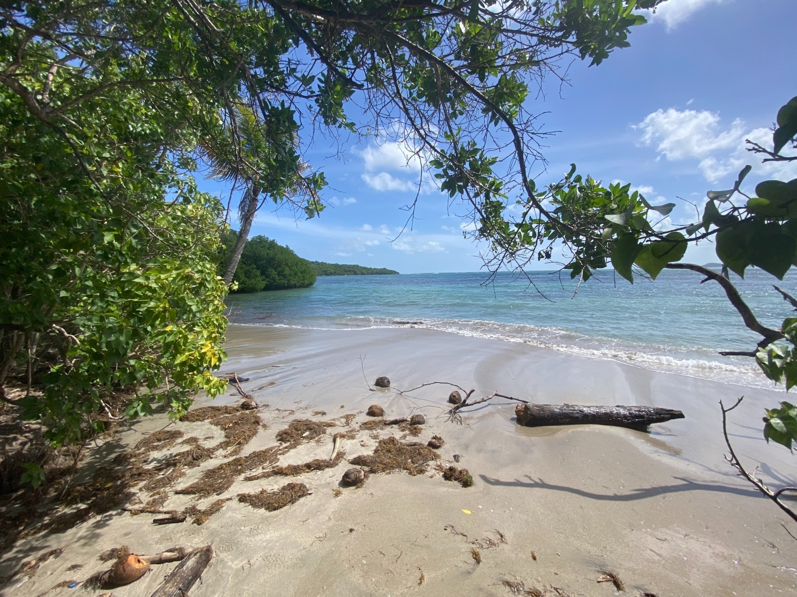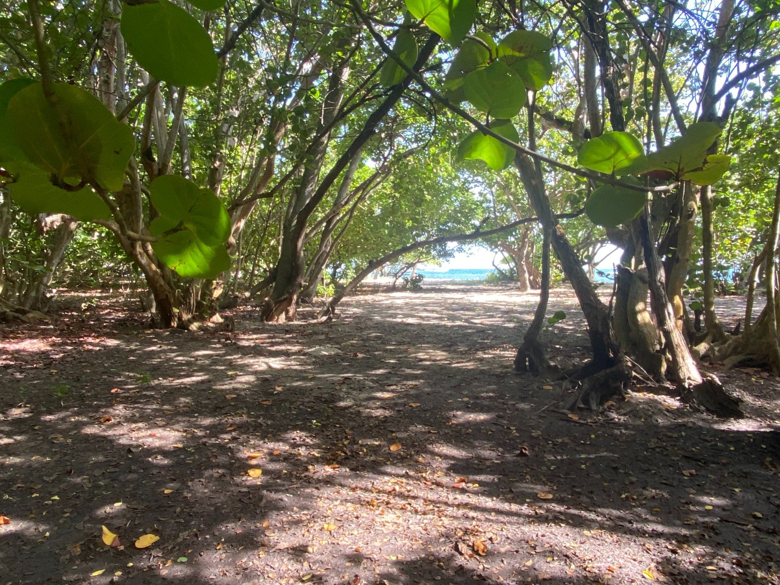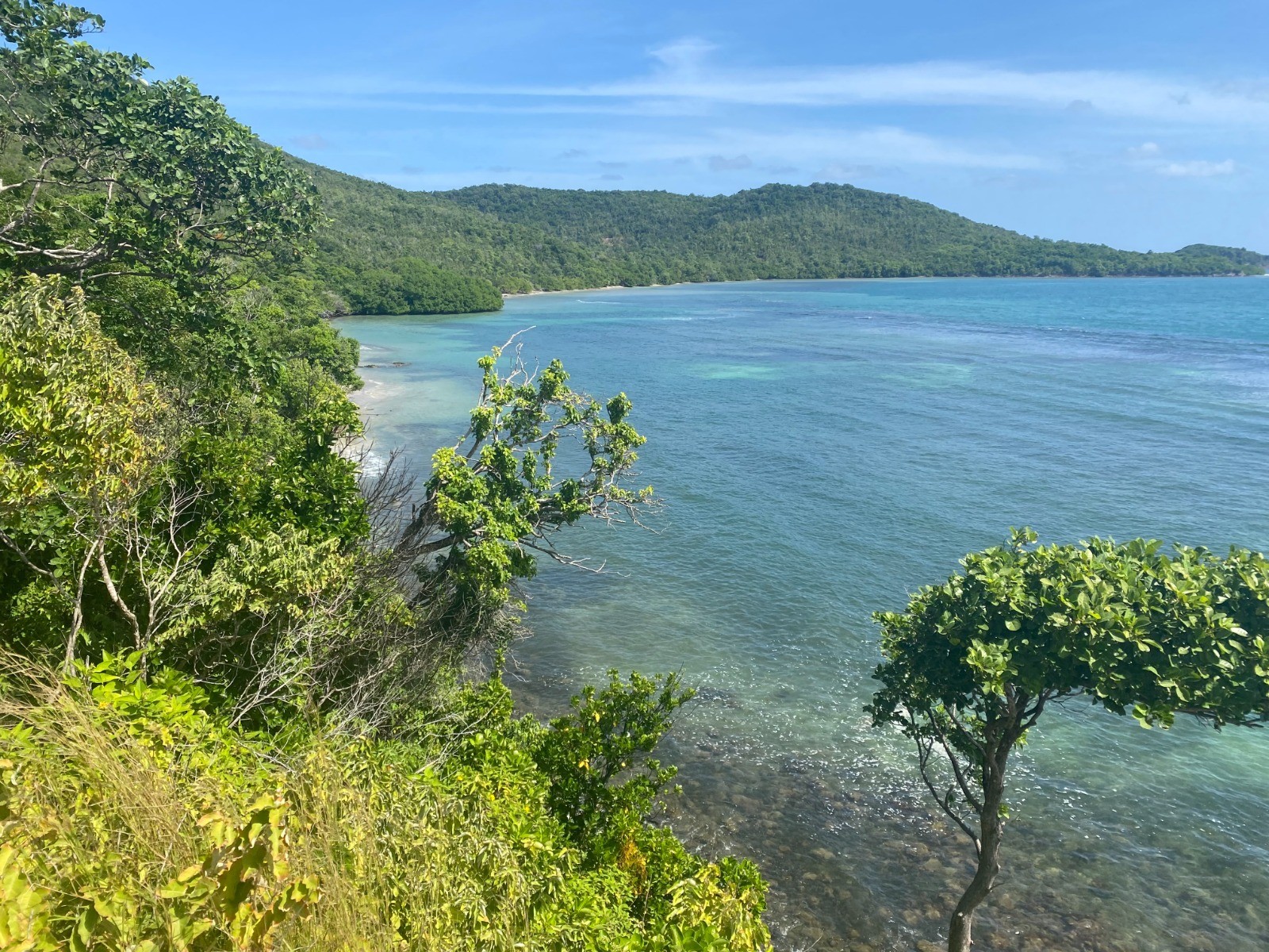 Plus rocailleux, en haut de la colline, vous pouvez profiter d’un dernier panorama avant de rejoindre la Baie Gros Raisin.
