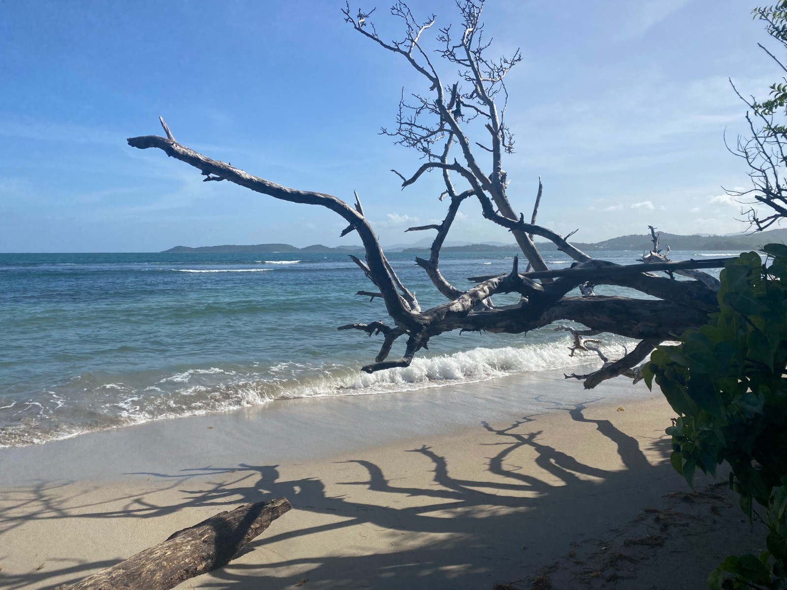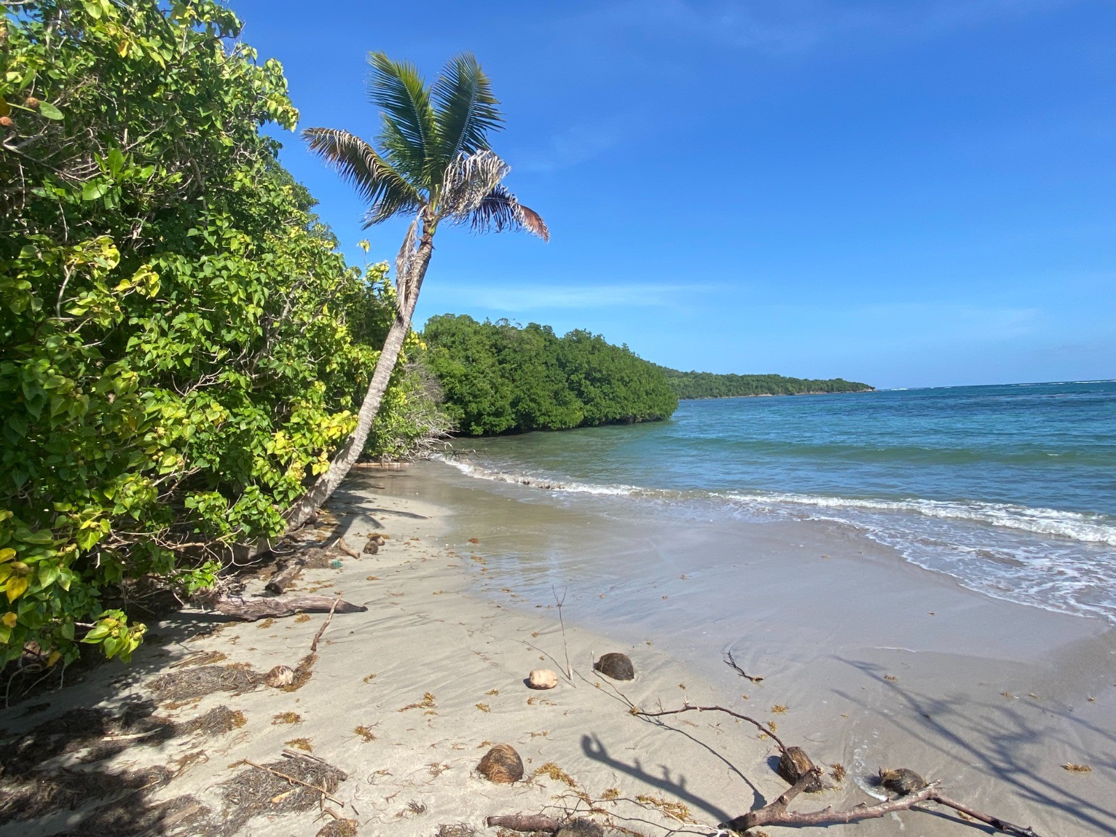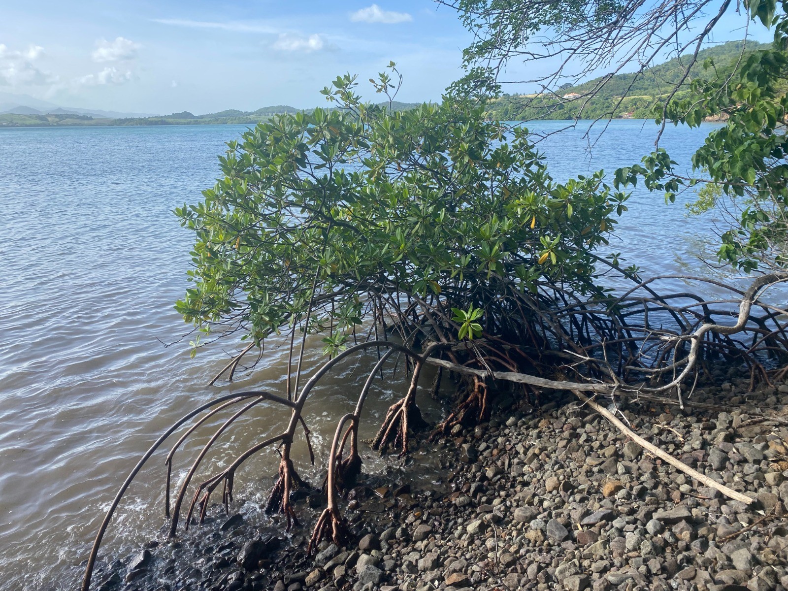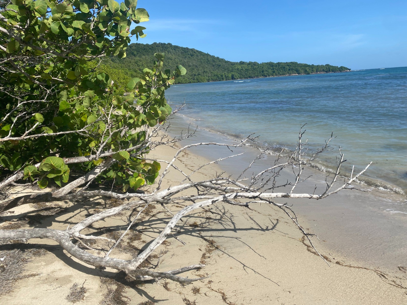 Plus rocailleux, en haut de la colline, vous pouvez profiter d’un dernier panorama avant de rejoindre la Baie Gros Raisin.