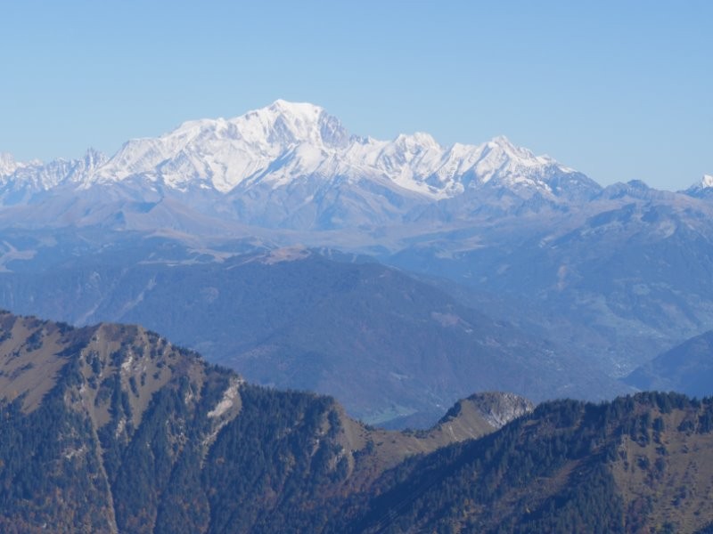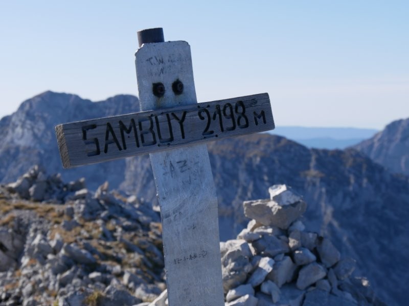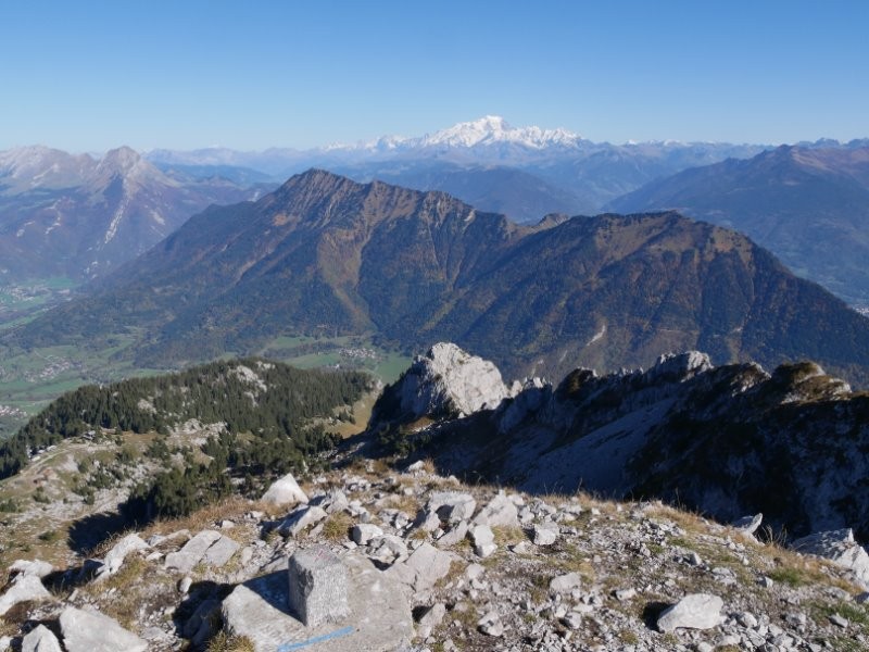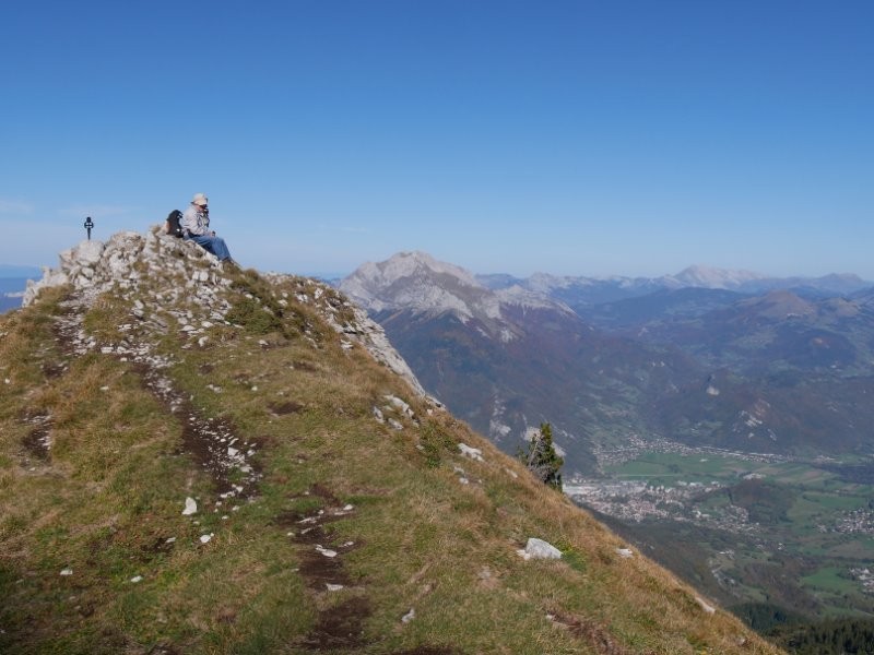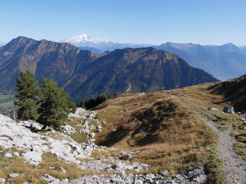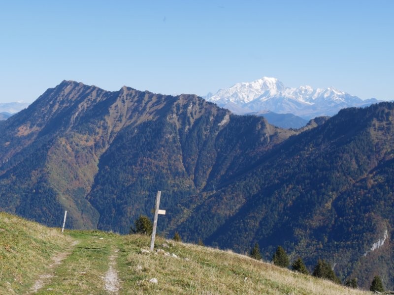 Montée : Par le Pas de l'Ours (1250m) court passage équipé, chalet de la Bouchasse (1700m), sommet de la station de ski et enfin le sommet.