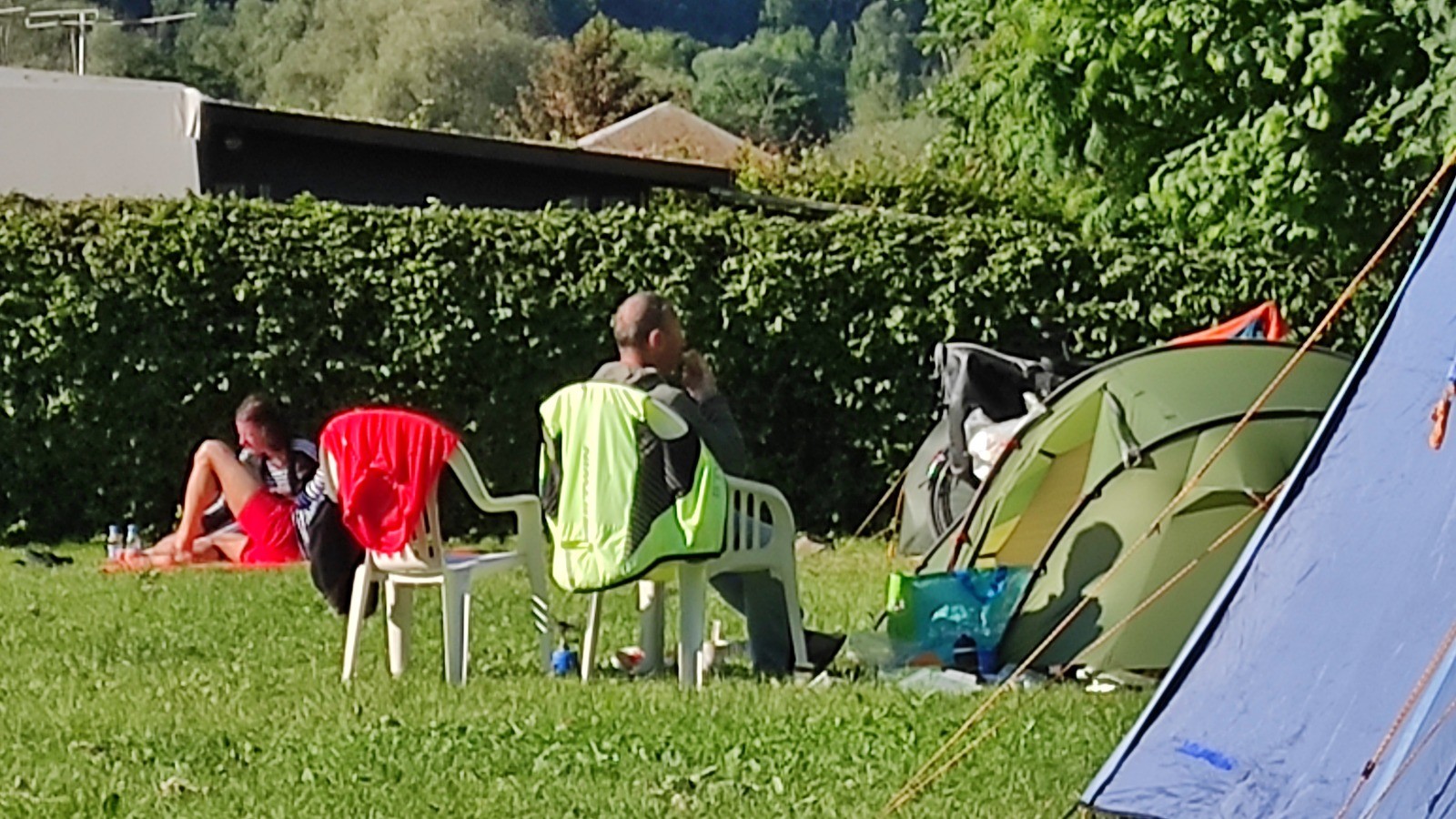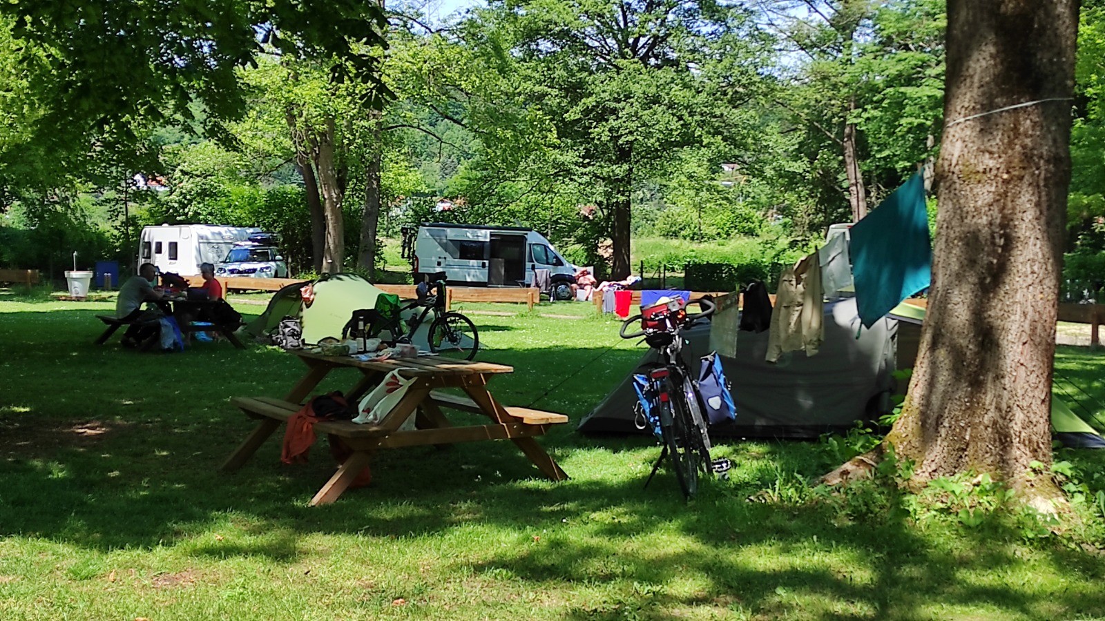 Tiens, il pleut. Retour dare-dare à la tente. Des restaurants pas loin. Ça fait deux jours que je mange aux camping, j'ai épuisé mes provisions.