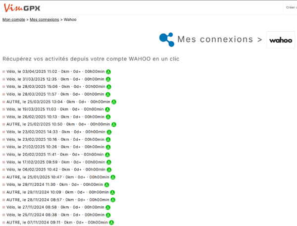 Ensuite, si j'ai besoin de récupérer plusieurs traces, je passerai par le partage public (tant qu'il fonctionnera comme ça côté wahoo fitness).