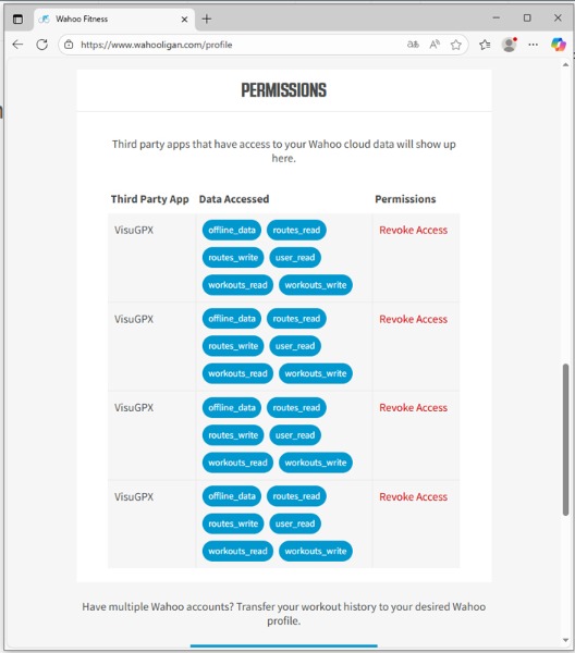 1/ Visu connecté à wahoo (1 token présent sur www.wahooligan.com/profile)