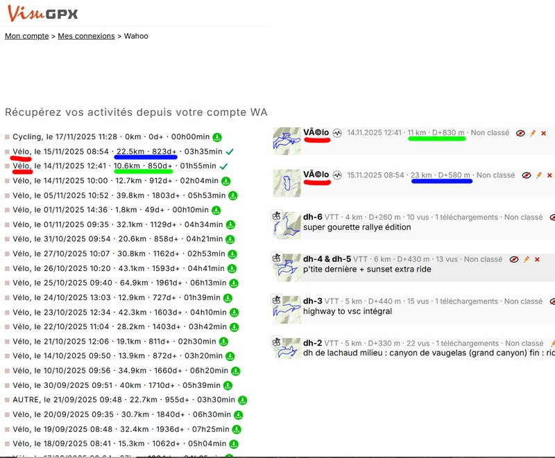 7/ en cliquant sur les (vieilles) traces présente dans la page "Récupérez vos activités depuis votre compte WAHOO en un clic",
