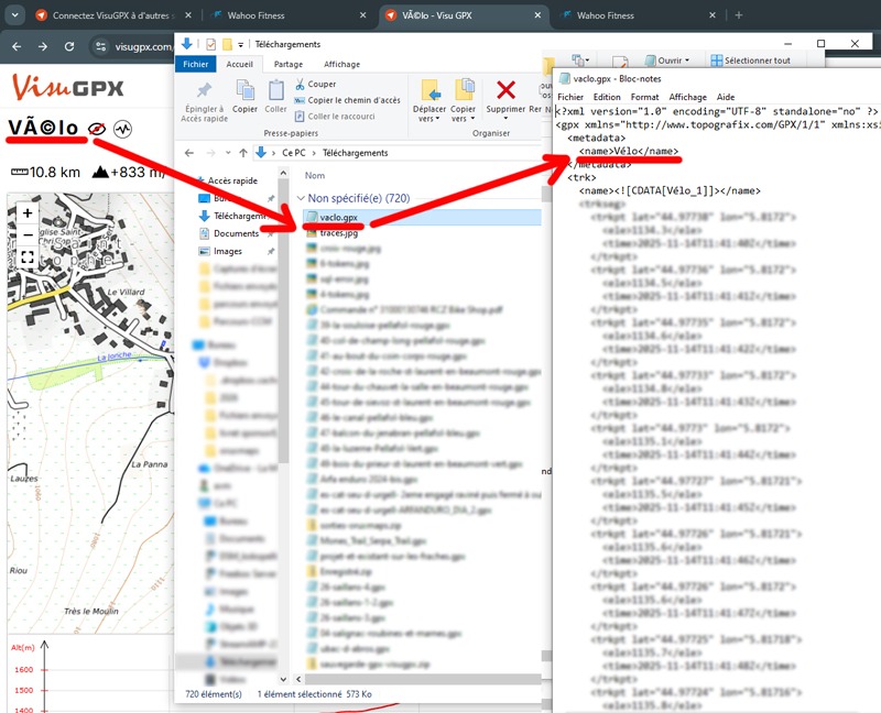 Le nom Vélo devient Vélo puis vaclo(.gpx) - par contre, la balise <name> du fichier est correcte.