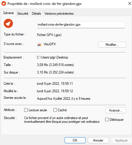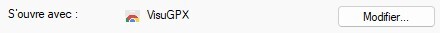 [315 posts] - Le 04/07/2022 13:46Admin a dit :Windows 11 uniquement ! Il faut faire clic droit > propriétés > s'ouvre avec > modifier (même si c'est déjà associé à VisuGPX) > VisuGPX