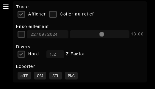Je verrai bien venu un bouton "3D" sous les boutons "+", "-", "plein écran" de l'affichage de la trace sur le fond de carte. Cela me semblerait plus ergonomique que le lien actuel dans le bas de la fiche sous les photos. Une idée en passant, rien d'urgent.