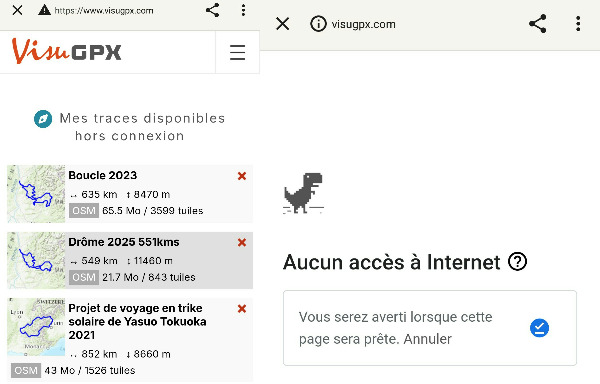 4 lancement de VisuGPX : je suis sur : Vous êtes hors connexion...et j'ai accès à mes traces en cache Youpi ça marche !
