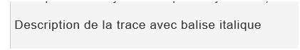 Ci-dessous capture d'écran de la description d'une trace sans le balisage HTML :
