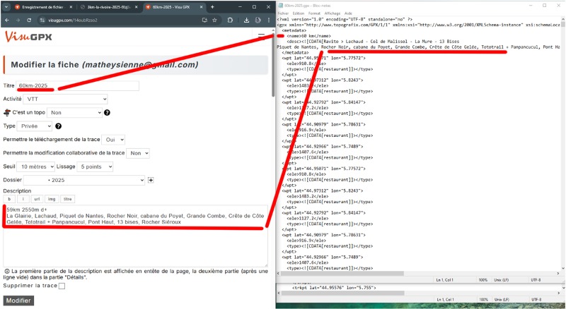Cela n'est évidemment intéressant que dans le cas où vous souhaitez avoir la même description dans la fiche visugpx et dans le fichier GPX.