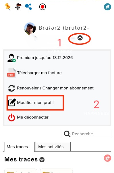 Nouvel inscrit, on me dit de changer le mot de passe initial dans mon profil. Je clique sur mon nom en haut à drote et pas de proposition de changement. Juste un onglet "mes traces", vide, et un onglet "mes activités", vide.
