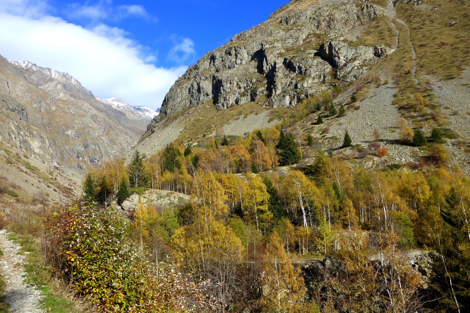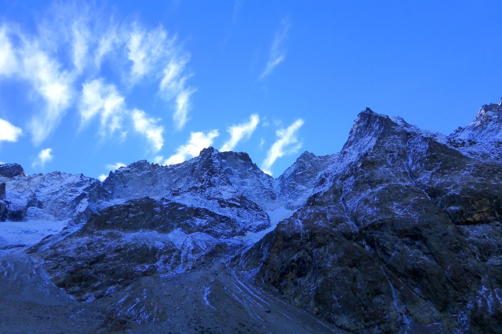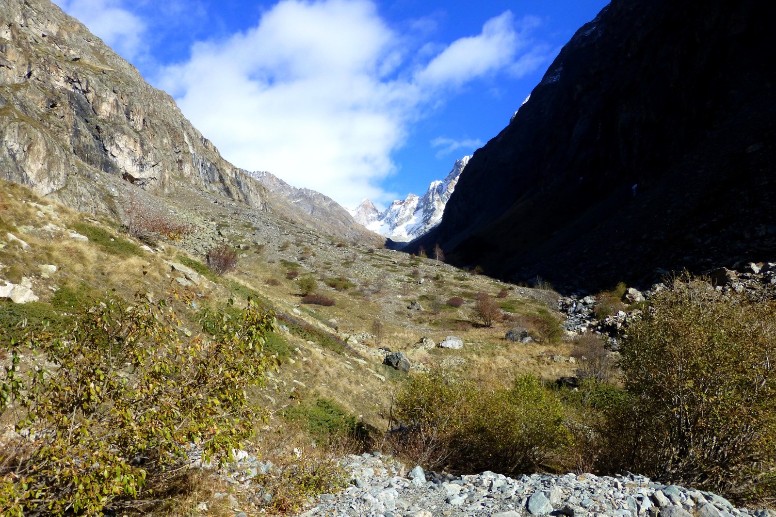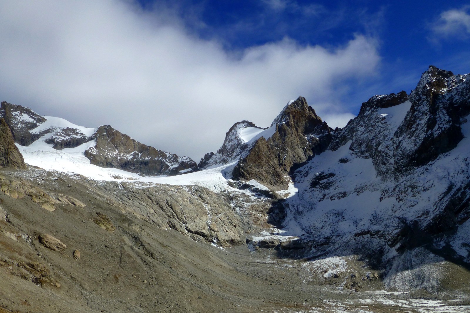Le refuge, construit sur son éperon rocheux, vaut la longue marche d'approche : le site est spectaculaire, un immense cirque glaciaire dominé par de magnifiques sommets.