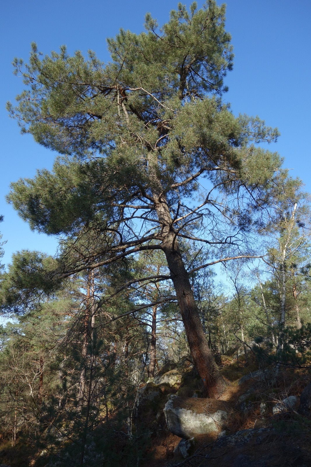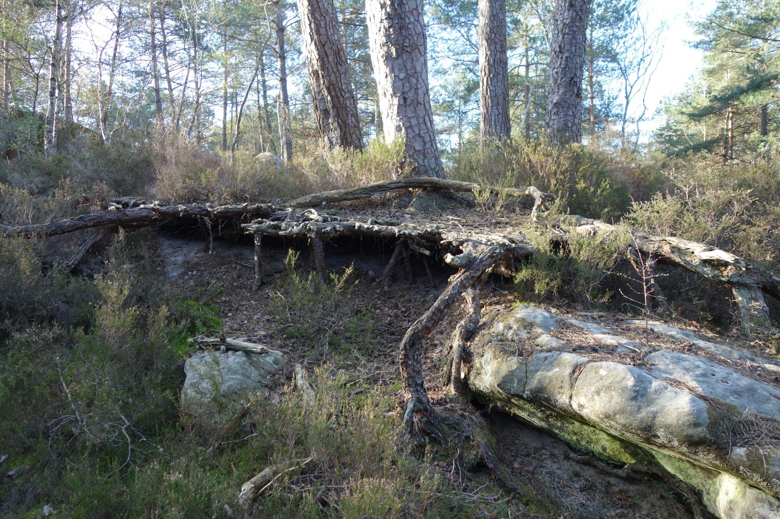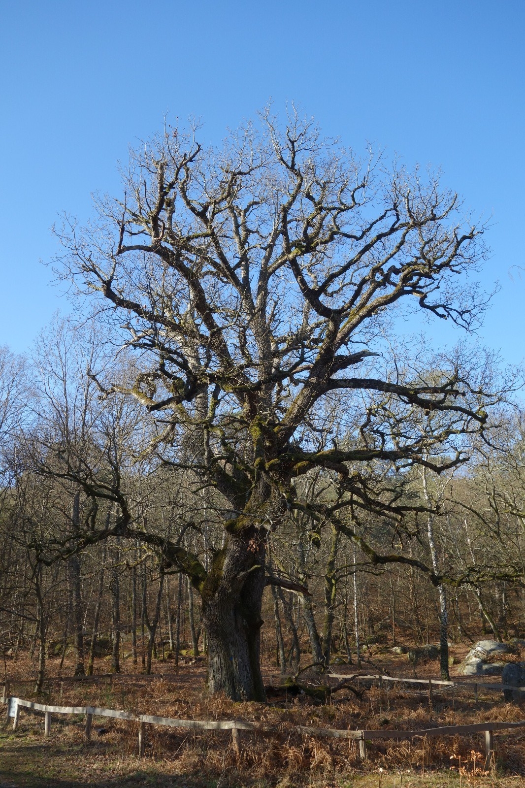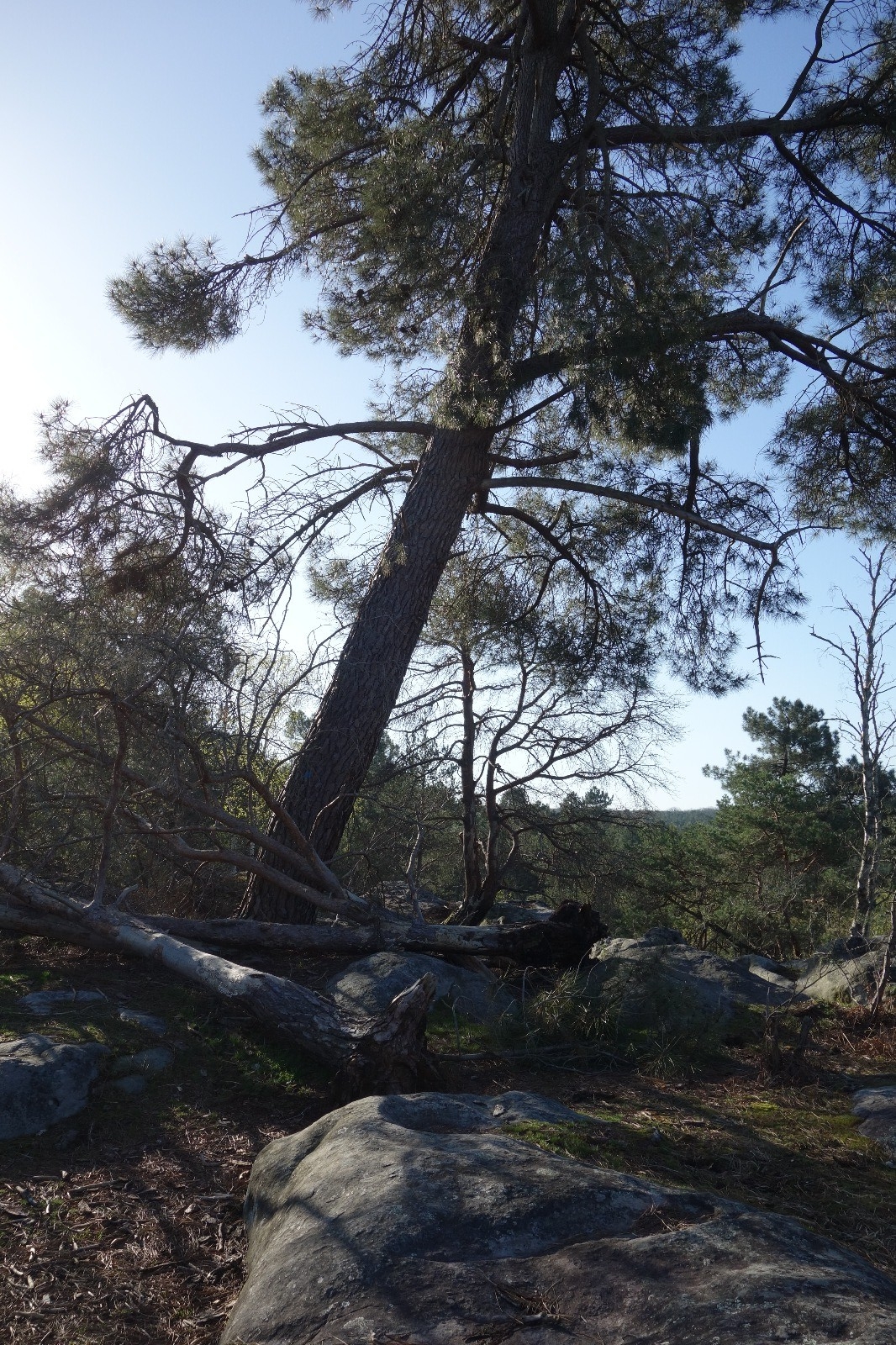 Arnres remarquables dans le secteur du Bas-Bréau, Robinier, Charmes, chênes, le sully qui servit pour le film "Asterix", le Lantara, des pins maritimes, un très vieux hêtre avec une loupe et sylvestre et le Captif ainsi que le signe de l'érosion avec les racines d'un groupe de pins. Les arbres sont signalés par des ronds bleus (attention aux faux ronds bleus, pour plus d'explication voir le carnet des arbres remarquables n° 4 des AFF.