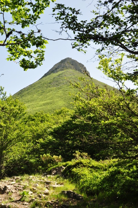 Depuis le petit parking de la Chapelle Notre Dame du Sacré Coeur et du Puy Griou, aux Chazes, montée douce en forêt et à l'ombre. Descente assez raide et en plein soleil, après le sentier menant au sommet du Griou.