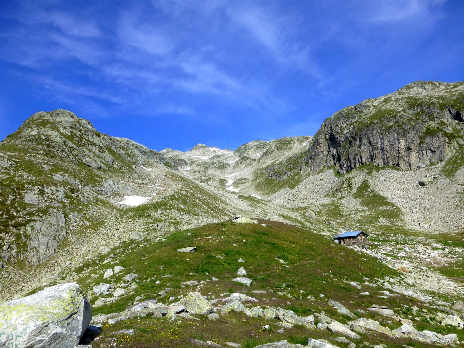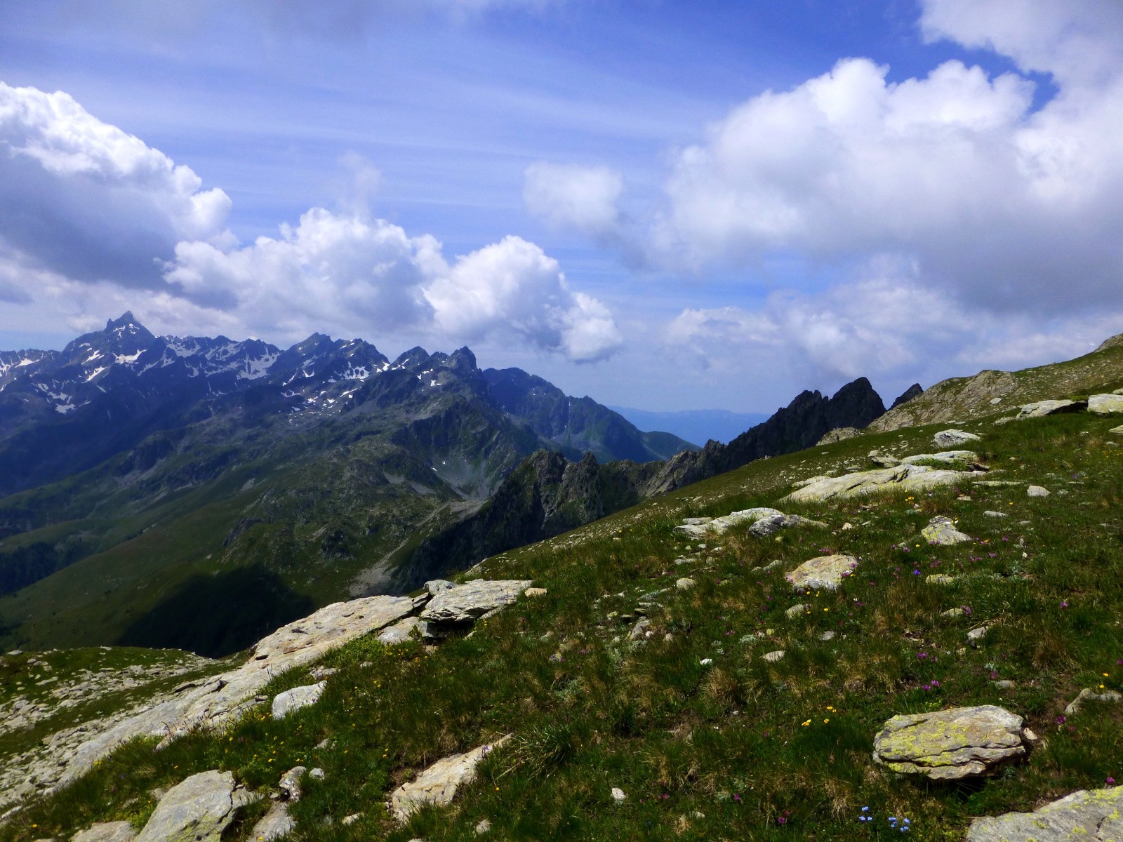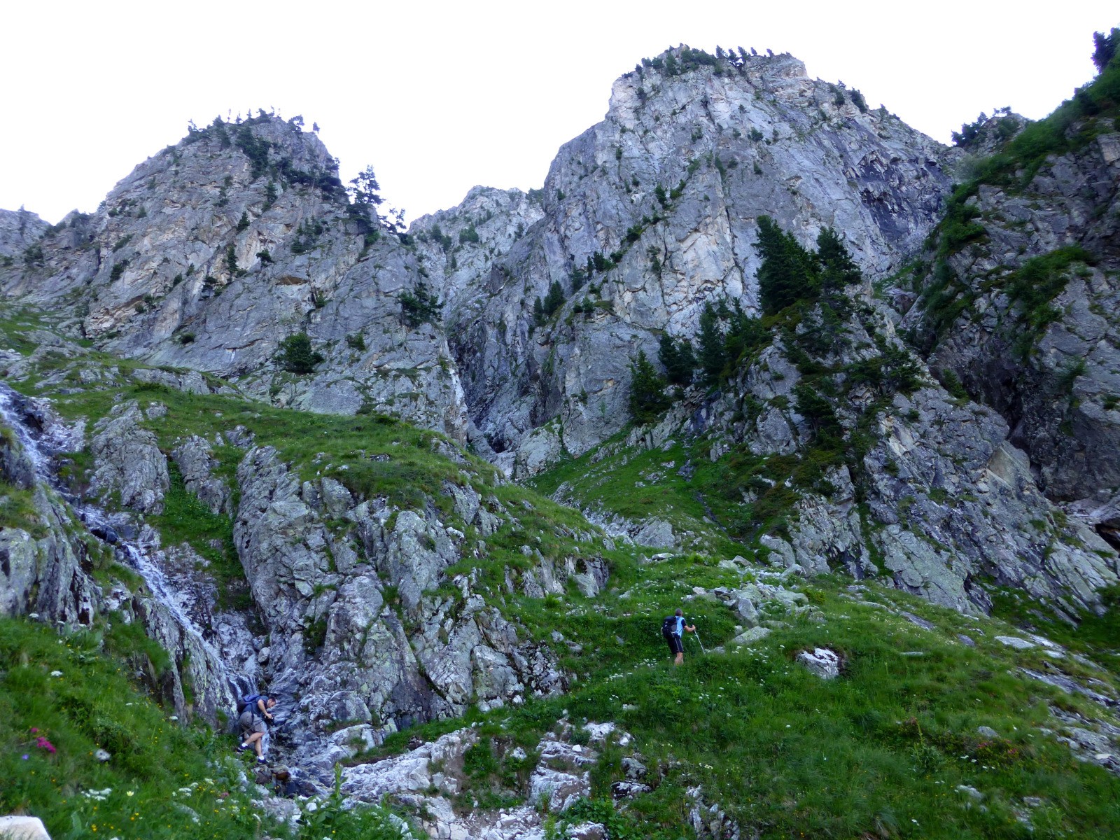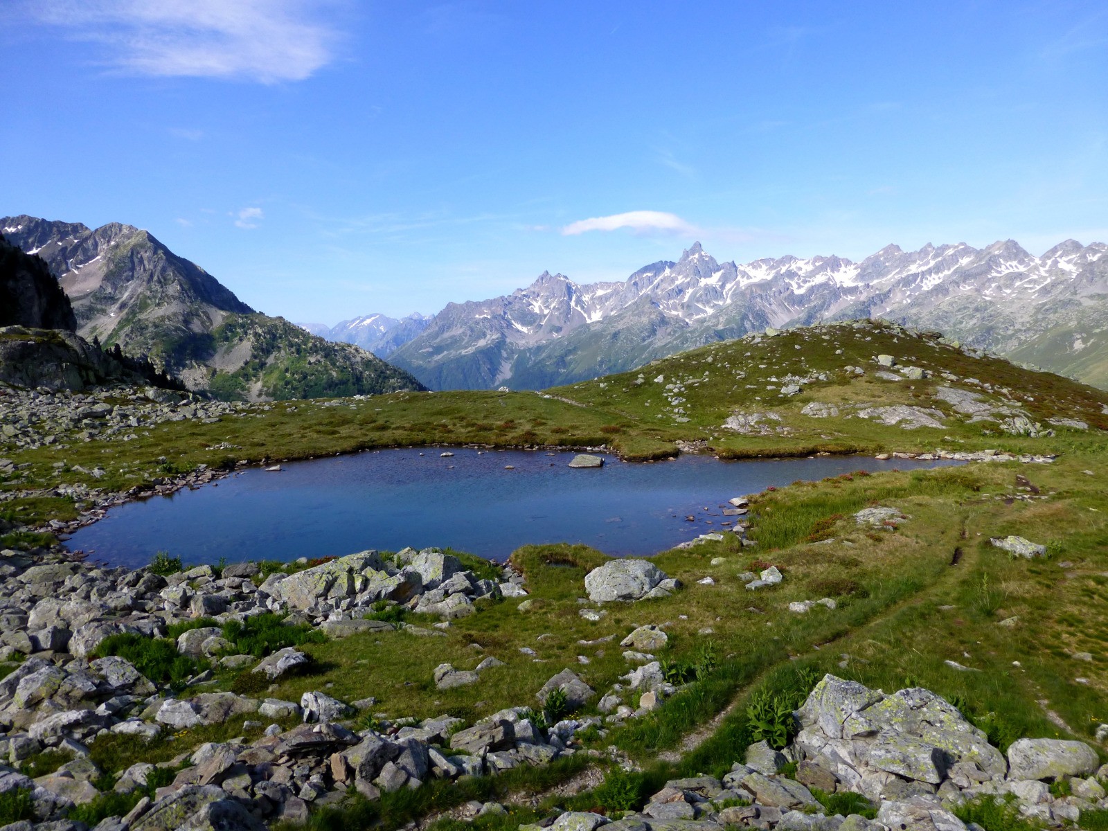 Accès au plateau des lacs par le raide col des Sept Laux. Jeu de piste avec les cairns pour atteindre le col de la Vache. La longue descente vers le Rivier se déroule dans un cadre somptueux.