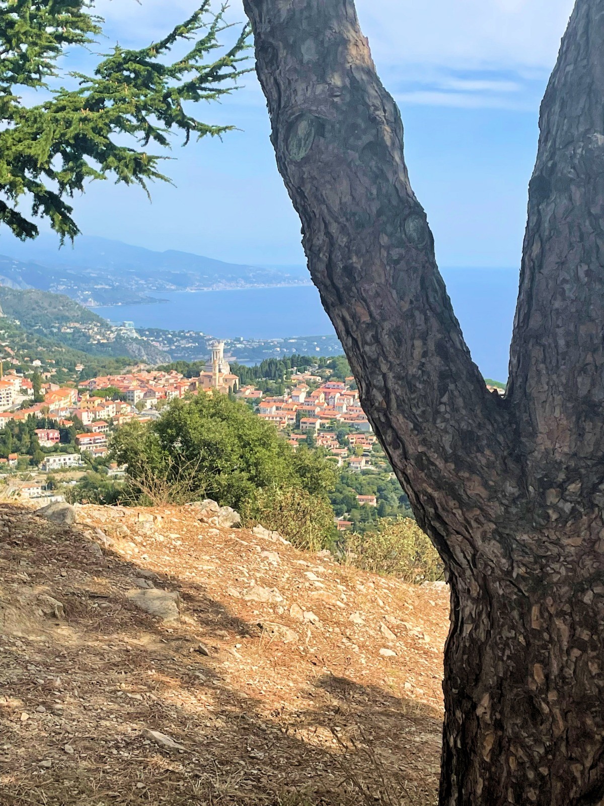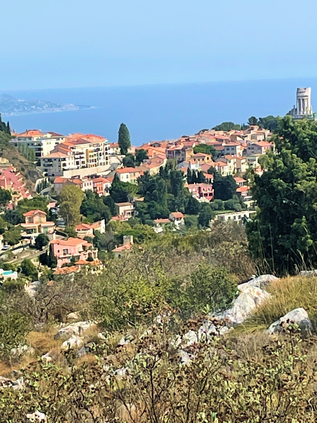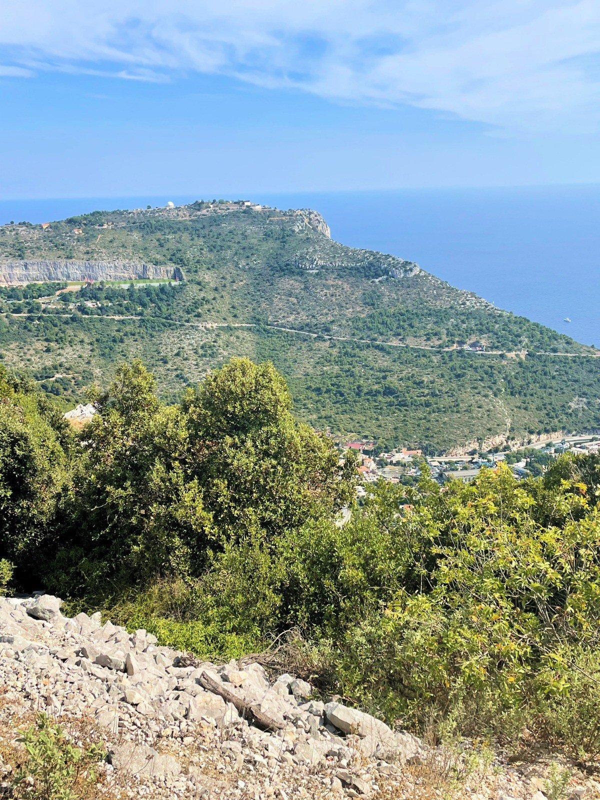 Magnifique sortie avec vues sur la Méditerranée de la Turbie à l'aéroport. Montée au passage à la Table d'orientation de la Simboula.