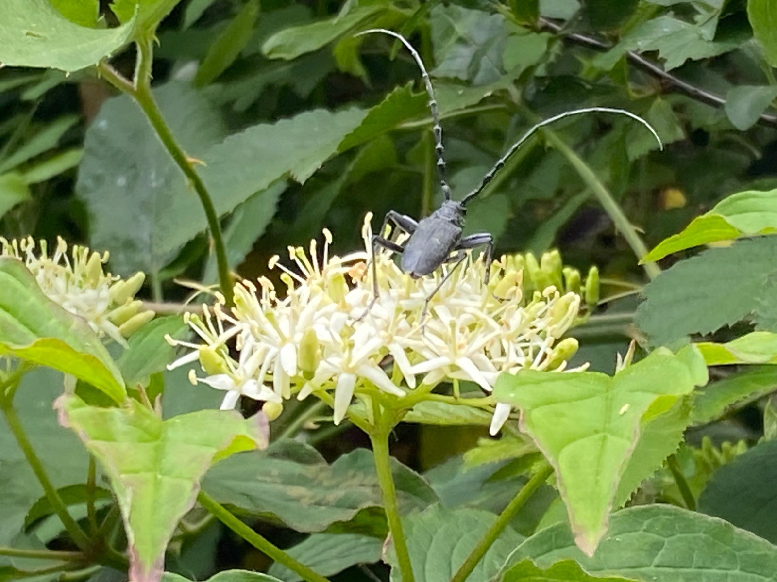 Et en poussant plus l'observation, c'est l'occasion de voir des insectes en action : accouplement de coccinelles ( photo no 5 ) , un grand capricorne ( photo no 6 ), cétoines grises, punaises arlequin...