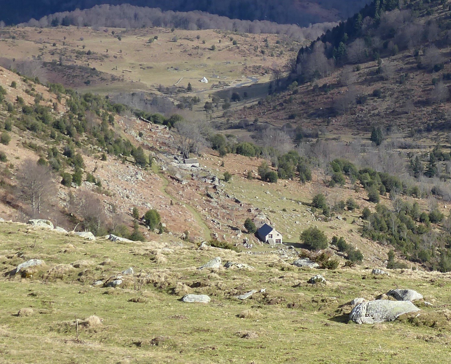 Voilà une jolie boucle dans ce secteur.Nous croiserons quelques chevreuils aussi surpris que nous d’ailleurs !Pour gagner le Pla de Castet nous prendrons pleine pente un talweg SSO assez relevé mais très court. C’est un bon point d’observation.Pic du Midi de Bigorre. Caste Sarradis,Coste Oueillere, las Pénès, Soum de Marianette,Soum de Bassia,Col d’Aspin , Plo det Naou etc etc . La sente qui démarre après la cabane du Sarroua est peu entretenue. Une belle boucle avec un temps clément.