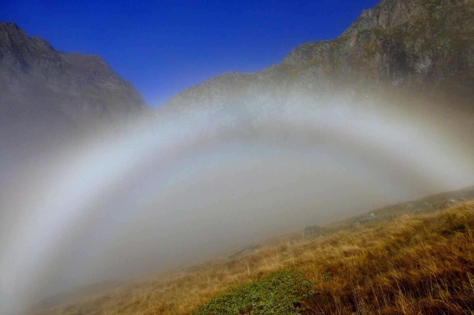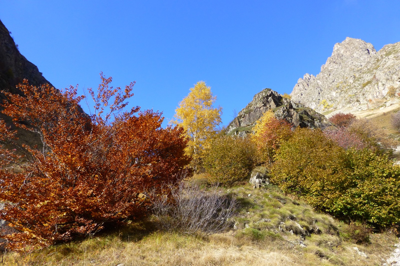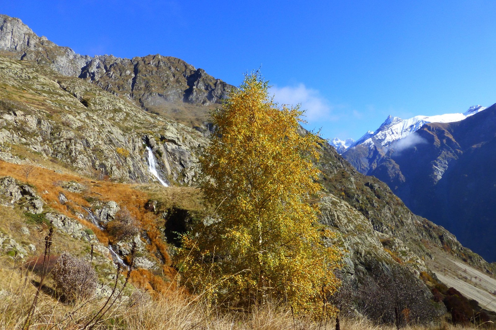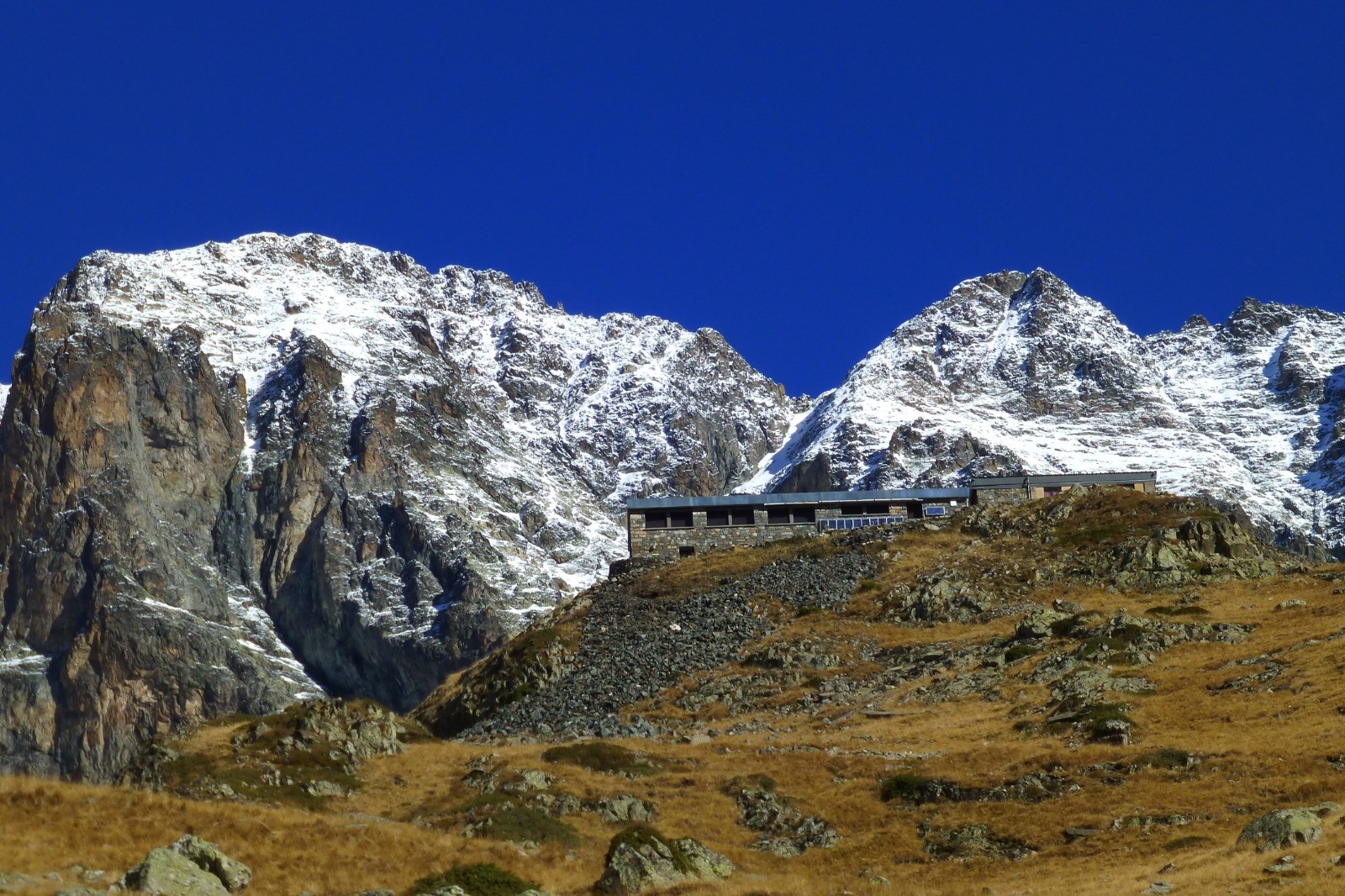 Passage étroit et spectaculaire au-dessus du refuge de l'Olan pour rejoindre la combe voisine. L'Olan, majestueux, domine.