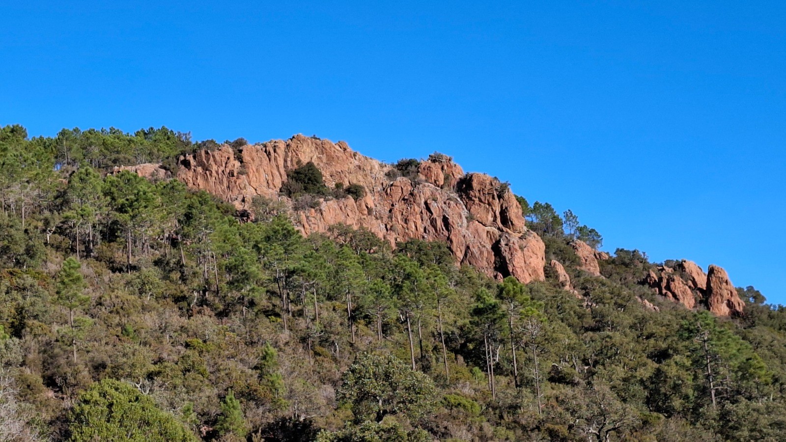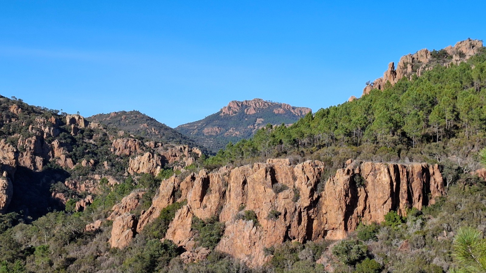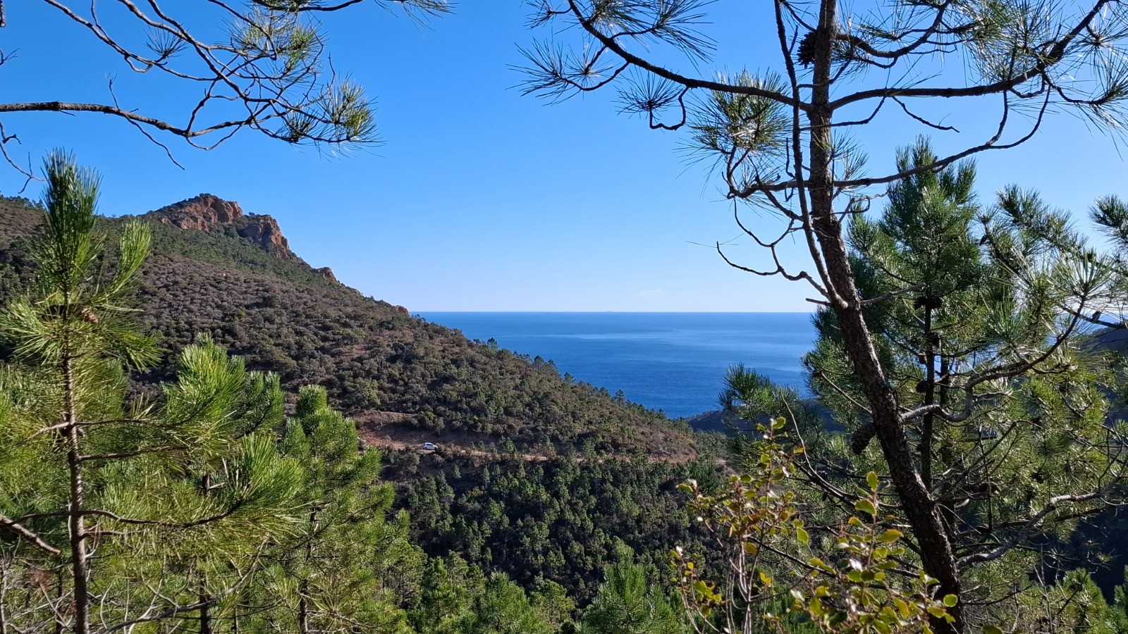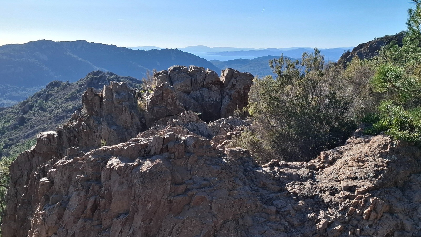 L'Estérel toujours magique. enchainement de 3 boucles du Col de Belle Barbe au Pin d'Aurelle. Toujours des vues imprenables avec le clou au Pic d'Aurelle.