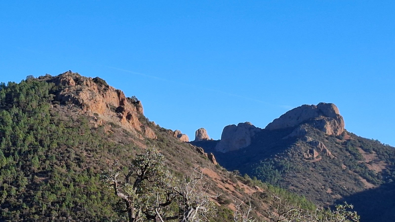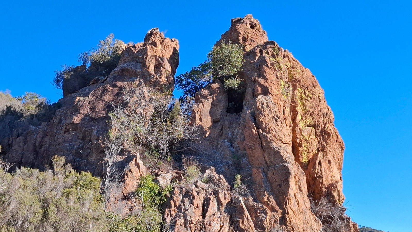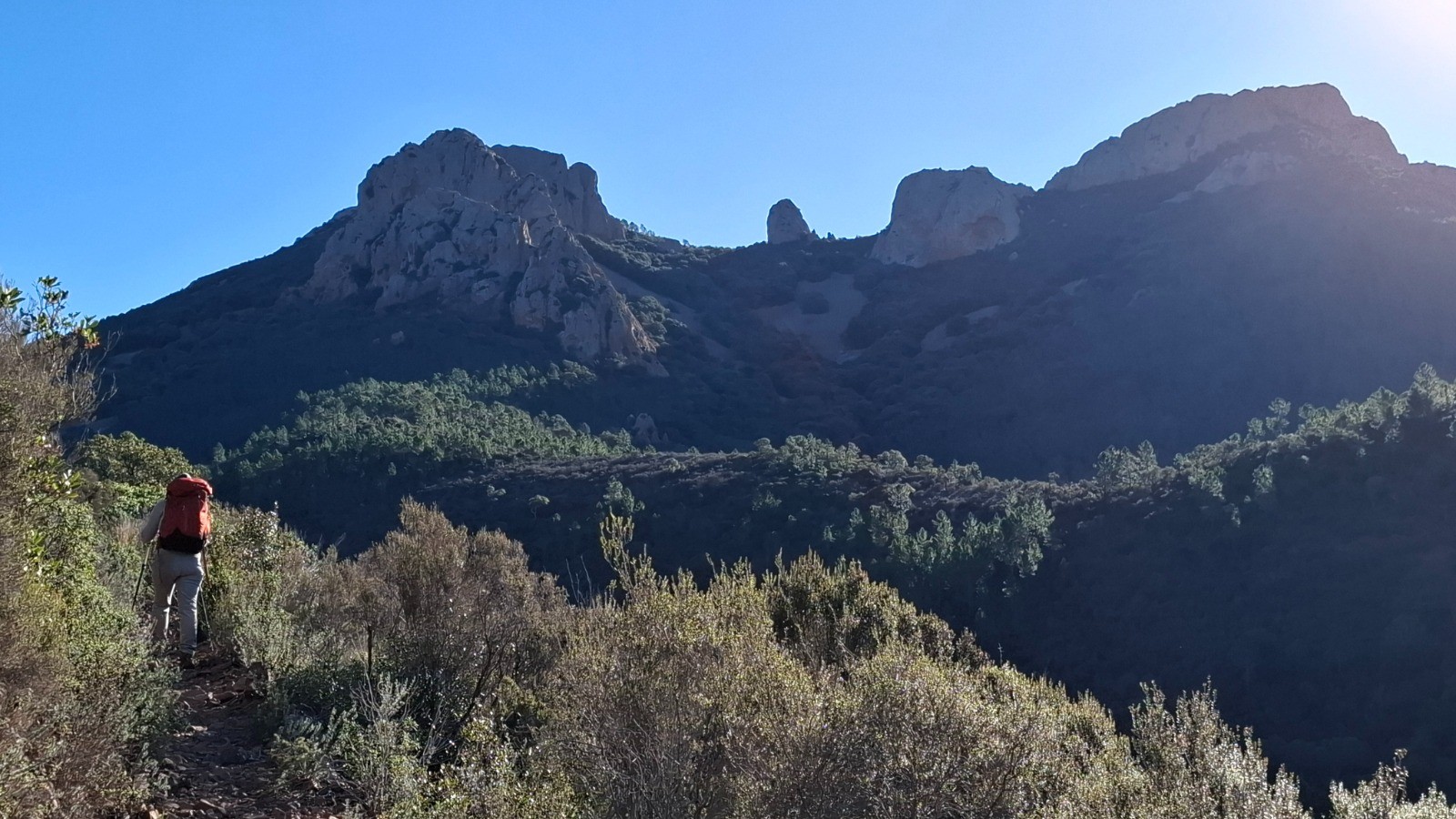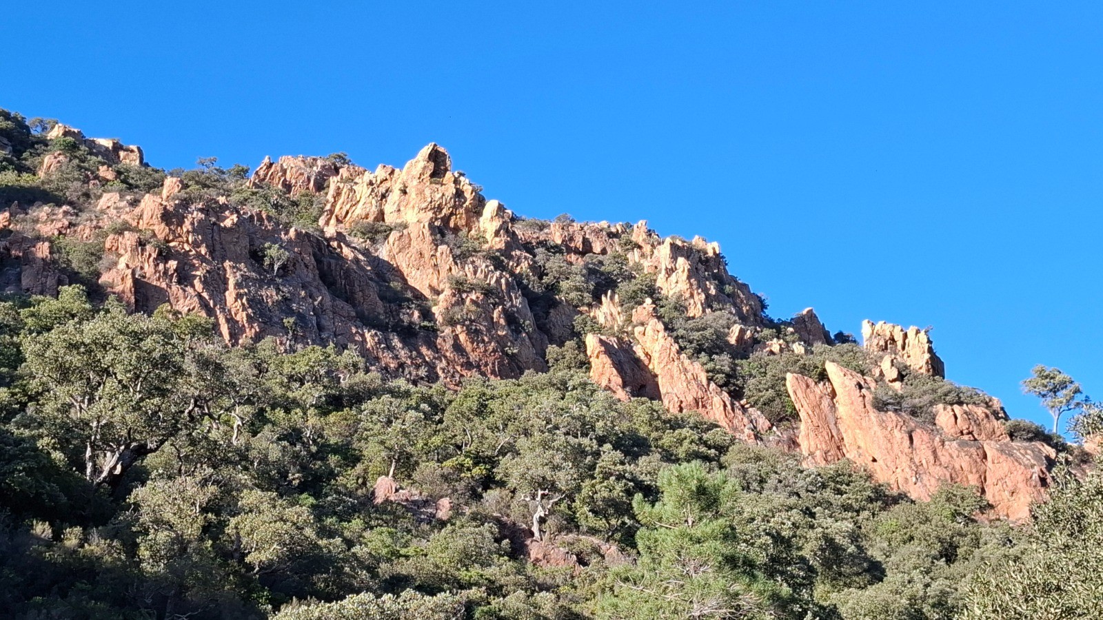 L'Estérel toujours magique. enchainement de 3 boucles du Col de Belle Barbe au Pin d'Aurelle. Toujours des vues imprenables avec le clou au Pic d'Aurelle.