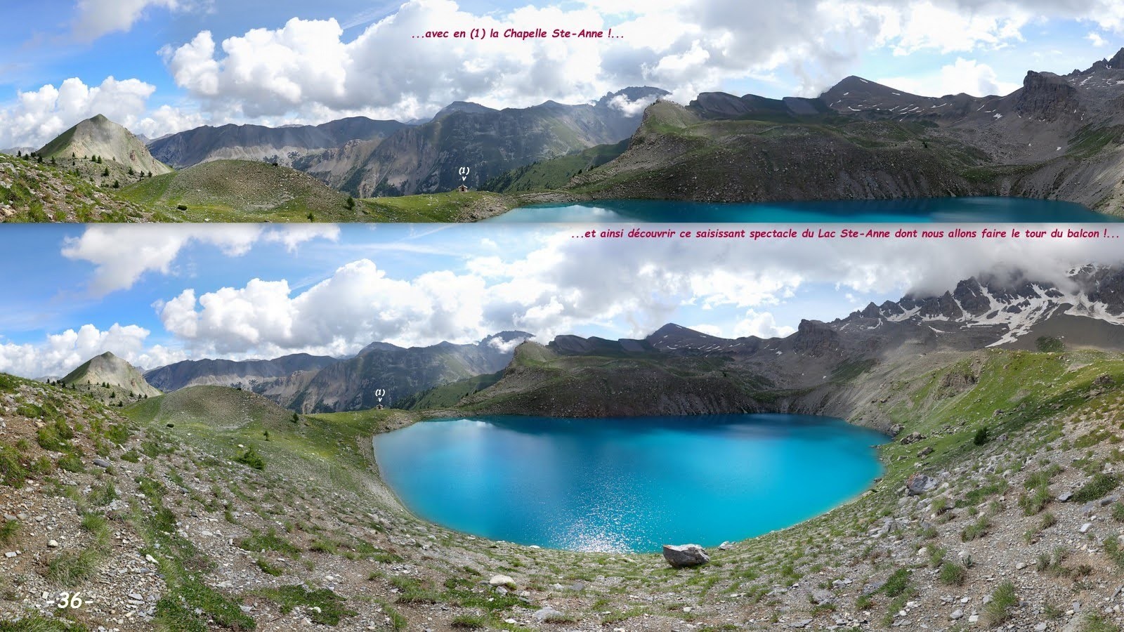 Suite aux Aiguilles de Chabrières et son Oucane, sollicité pour leur présenter un projet pour une nouvelle fabuleuse randonnée sportive susceptible de ravir l'ex-nordiste, travailleur immigré dans le chaud pays Aixois, toujours en quête d'un exploit et sa compagne inconsolable nostalgique de ses chères Hautes-Alpes de naissance, qui souhaitait lui faire découvrir de véritables lacs de montagne, l'Ours n'a rien trouvé de mieux que l'insolite enchaînement des Lacs des Rouites, des Prés Soubeyrand ou Miroir et Ste-Anne, vus sur tous les angles et à y être ! ne pas se priver de la visite du remarquable