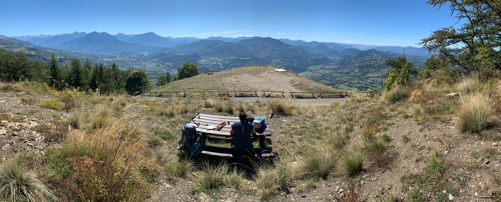 Après le col de moissiere vous prenez une piste pour rejoindre le parking . Le sentier est très facile parfait pour une balade en famille. Vous profiterez d’une vue incroyable sur Gap et du lac de Serre ponçon. Sur le retour nous n’avons pas pût couper par la forêt, des bûcherons y travaillaient.