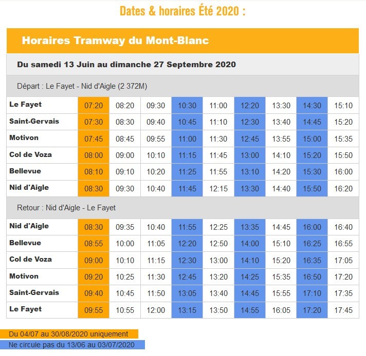 En été, il vous emmène jusqu'au Nid d'Aigle (2372 m). De là les alpinistes confirmés et équipés pourront accéder aux refuges de Tête Rousse et du Goûter pour l'ascension du Mont-Blanc.