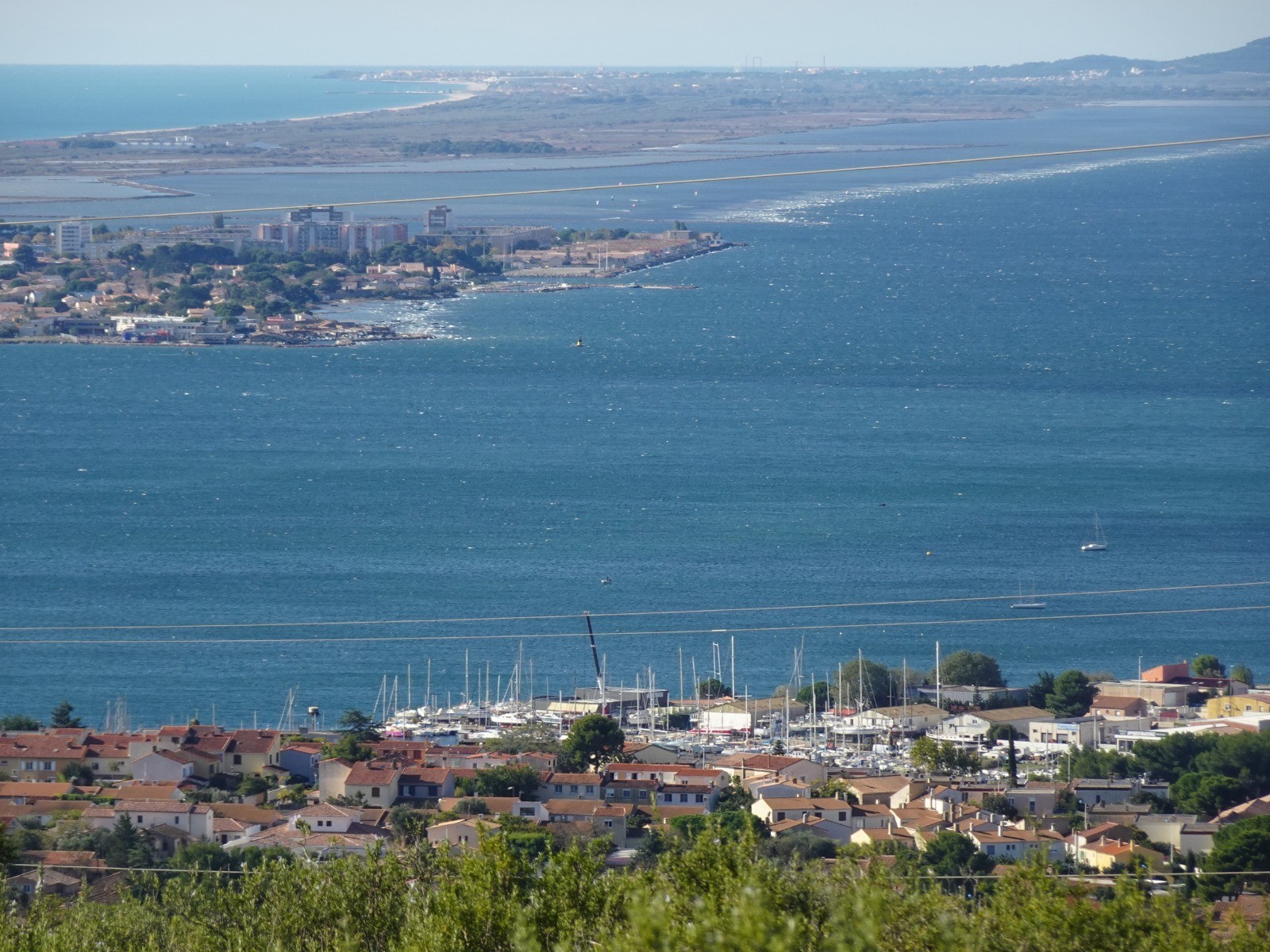 Vues exceptionnelles vers l'étang de Thau, mais aussi le port de Sète, Frontignan, la Grande Motte,...